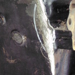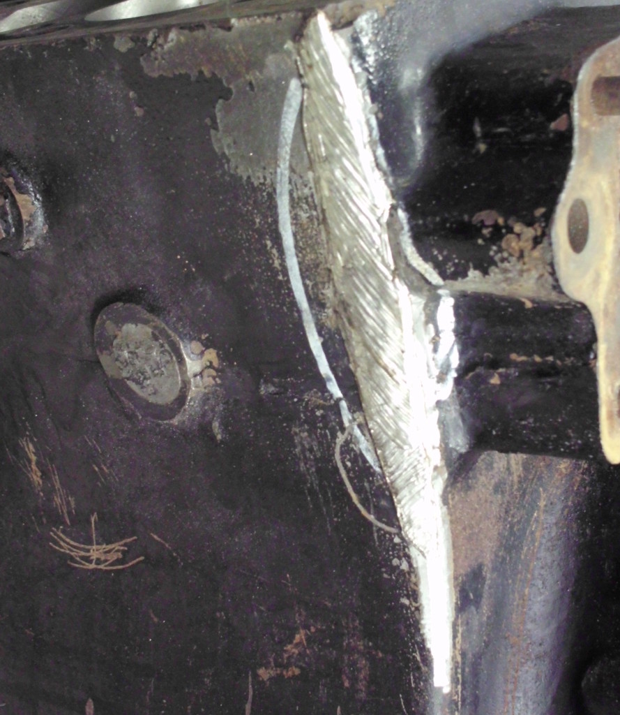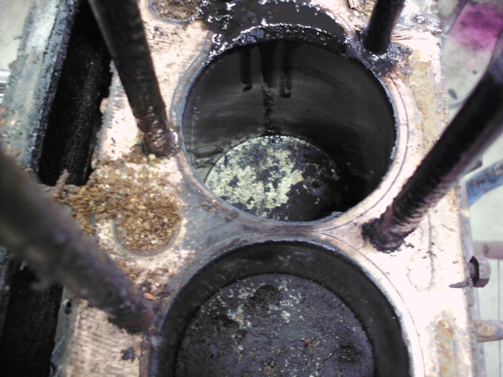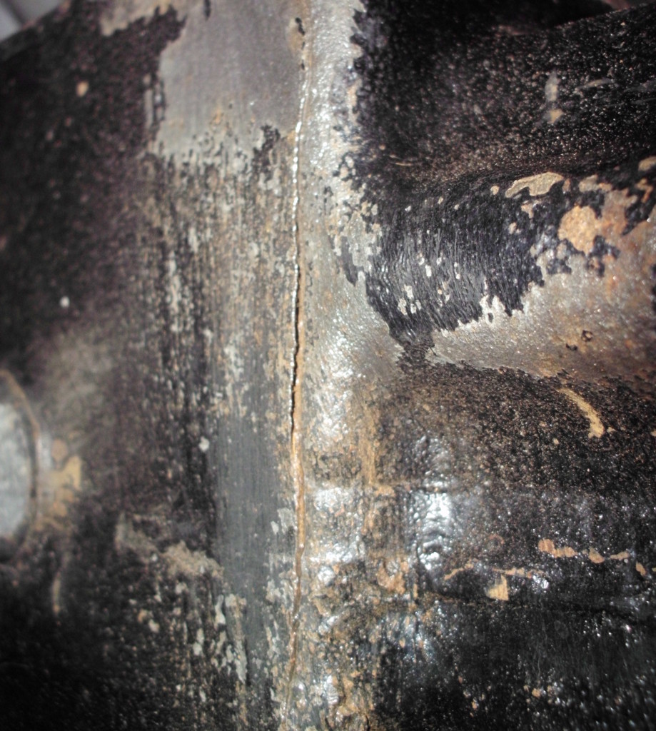 Bevor es daran ging den gerissenen Block wieder dicht zu bekommen, stand eine gründliche Reinigung auf dem Programm. Die Ablagerungen der letzten Jahrzehnte waren zu entfernen. Nachdem der größte Schmutz enfernt war, zeigten sich neben dem Riß noch marode Froststopfen. Diese wurden natürlich auch entfernt und erneuert. Der große Riß wurde mit Laserschweißverfahren verschlossen und nachträglich einer Druckprüfung unterzogen.