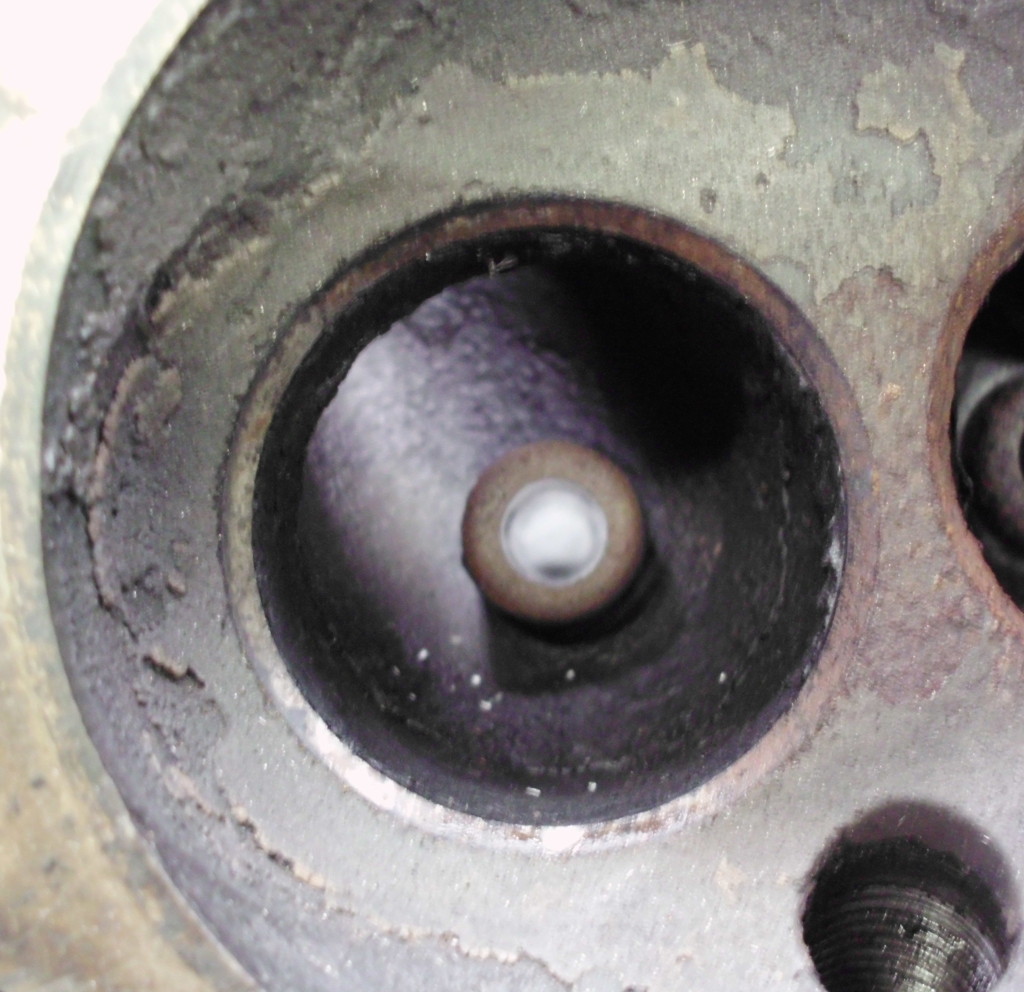 Bei Vorkriegsmotoren trifft man sehr häufig auf gebrochene Ventilfedern. Wie auch hier. Die Ventilführungen sind kanalseitig sehr ungünstig dick ausgeführt und natürlich auch nicht mit Schaftabdichtungen ausgerüstet. Die Materialien für Schaftabdichtungen hatte man zu dieser Zeit noch nicht. Weiterhin sind die Ventilwerkstoffe nicht für den Betrieb mit bleifreien Kraftstoffen ausgelegt.