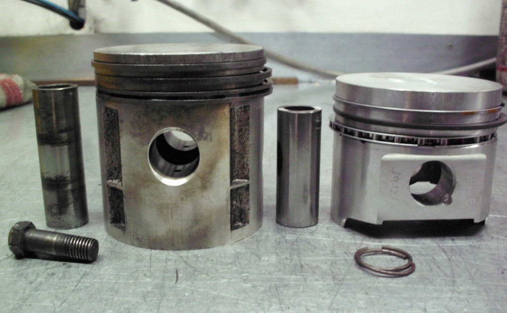 Die angefertigten Schmiedekolben konnten wir kürzer u. leichter ausführen. Die moderne Ringbestückung mit dreiteiligem Ölabstreifring und schmalen Hochleistungsringen in der ersten und zweiten Ringnut verhelfen zu geringeren Reibungsverlusten und höherer Standzeit. Das Kolbengewicht inkl. Bolzen hat sich im Vergleich zum ursprünglichen Kolben um über 20{20de0094b84ab31f15d8e893bd427a4a876ff73c91e9d8d921ea99031f098016} reduziert ( etwa 110 Gramm). Beide Gewichtsreduzierungen verhelfen dem Motor zu einer spontanerer Gasannahme, bei reduzierten Belastungen für Lagerungen und Motorblock.