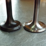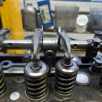 Der Zylinderkopf wurde mit moderne Ventilen ausgestattet. Einlaßseitig wählten wir einen größeren Durchmesser. Die Ventilführungen wurden aus einer speziellen Bronze ströhmungsgünstiger angefertigt und auch zur Aufnahmen einer Schaftabdichtung vorbereitet. Nach der Kanalbearbeitung und einpressen der neuen Ventilführungen wurde der Ventilsitz hinsichtlich optimaler Ströhmungsbedingungen bearbeitet. Das gesamte Federpaket inkl. Federteller und Ventilkegelstücke wurde durch Neuteile ersetzt. Die Federn wurden auf das angehobene maximale Drehzahlniveau ausgelegt.
