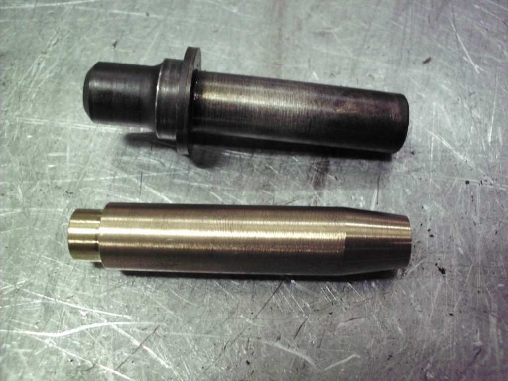 neue u. alte Ventilführung. Neue Führung: kanalseitig verjüngt, mit Aufnahme für Schaftabdichtung
