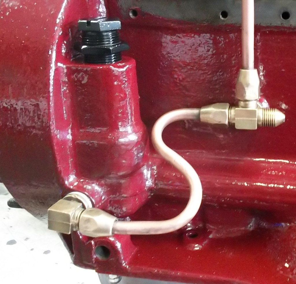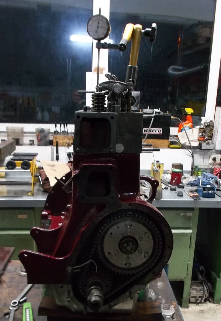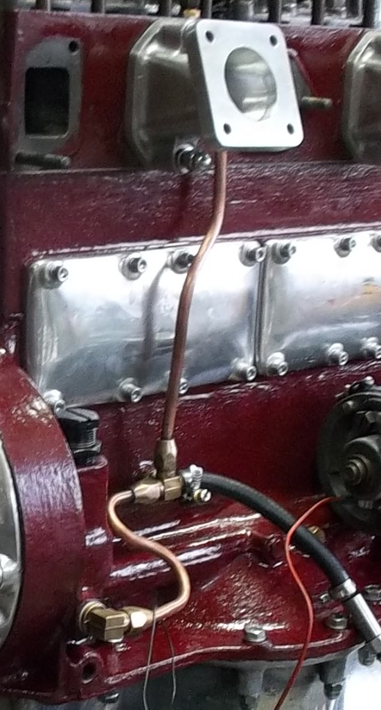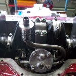 Komplett montierte Oldtimermotoren verlassen die Firma nicht, bevor sie einen Funktionstest erfolgreich bestanden haben. Der Motor wird mit Öl befüllt und nur mit Anlasserdrehzahl bewegt. Am Anschluß für die Öldruckanzeige des Armaturenbrettes wird ein Manometer angeschlossen und an der Kipphebelwelle kann die Ölversorgung des Ventiltrieb leicht überprüft werden.