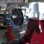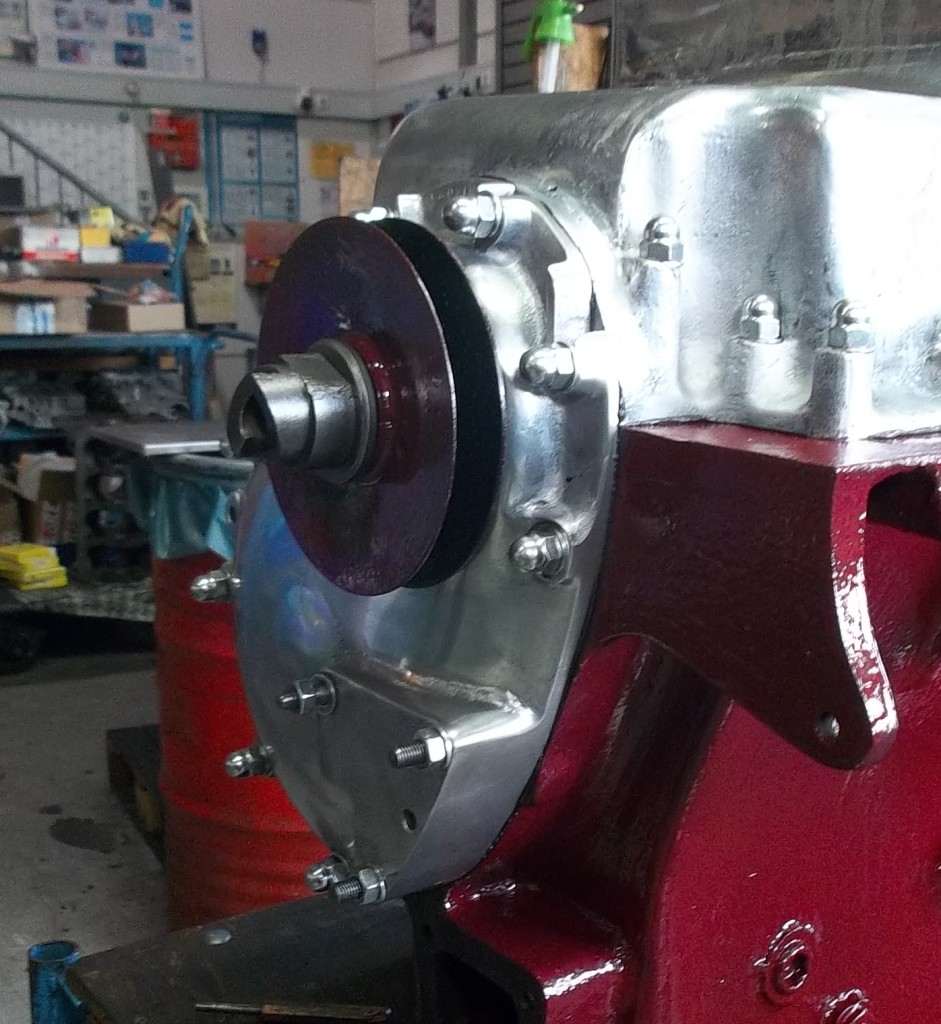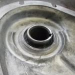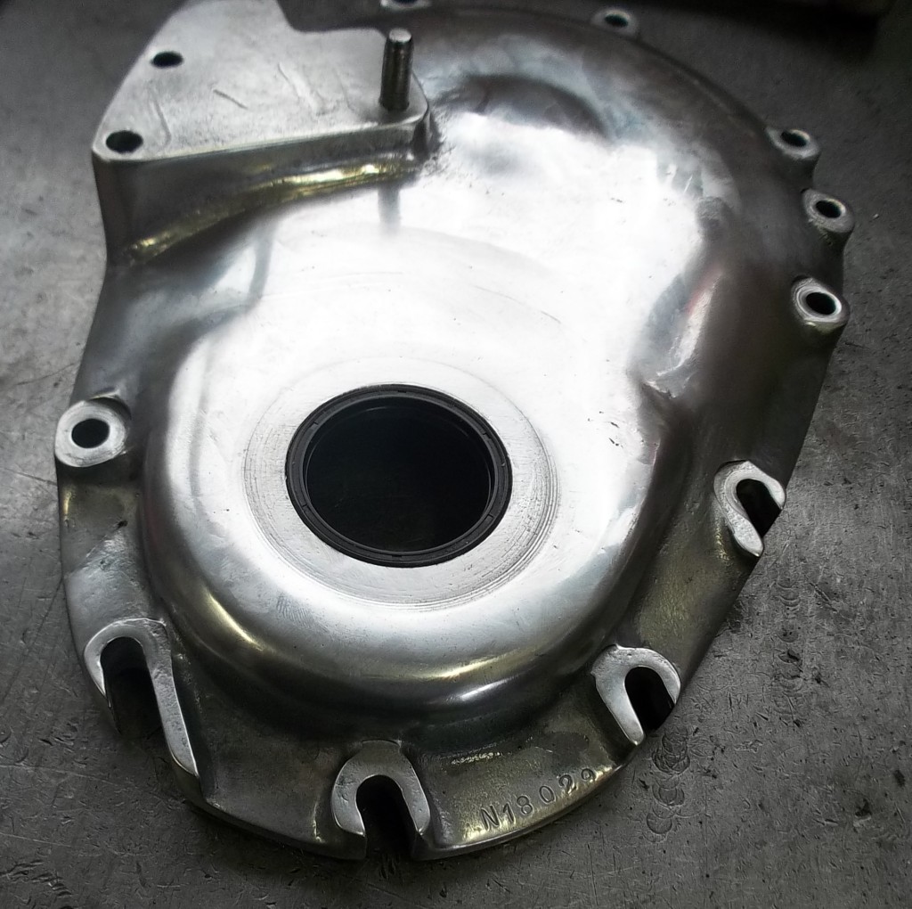 die ursprüngliche Abdichtung der Kurbelwelle war als Spiralnut im Stirndeckel ausgeführt. Da die Gehäusebohrungen oft ausgeschlagen sind und diese Art der Abdicht grundsätzlich zu Undichtigkeiten nach dem Abstellen des Motors neigen, stellten wir die Abdichtung auf Wellendichtring um. Der Gehäusedeckel wurde passend zur Wellendichtringabmessung ausgefräst. Der Riemenscheibenzapfen mußte ebenfalls auf das zugehörige Innenmaß des Wellendichtrings bearbeitet werden.