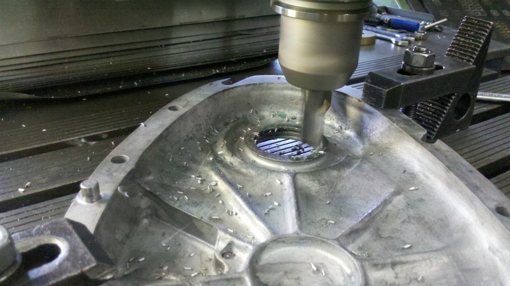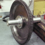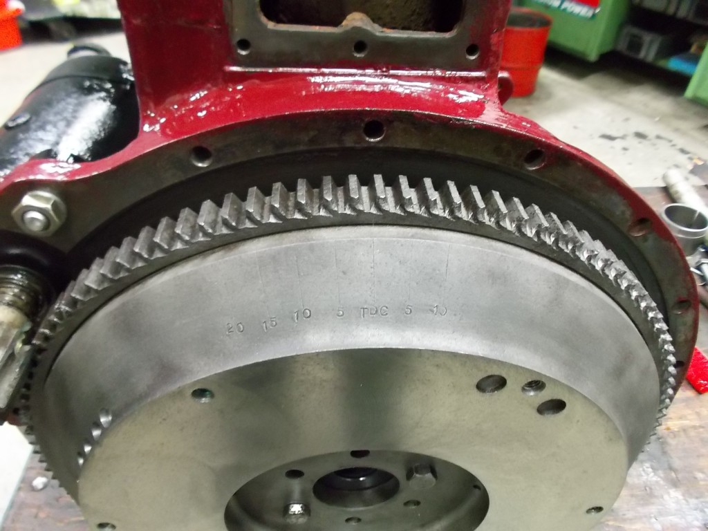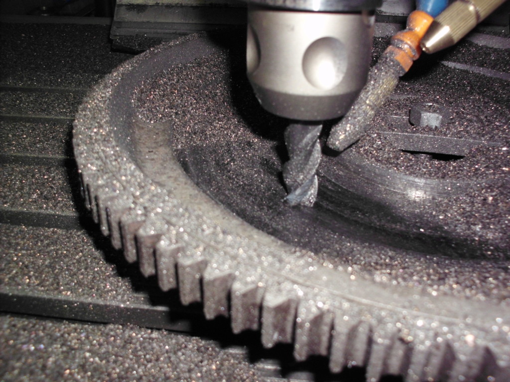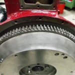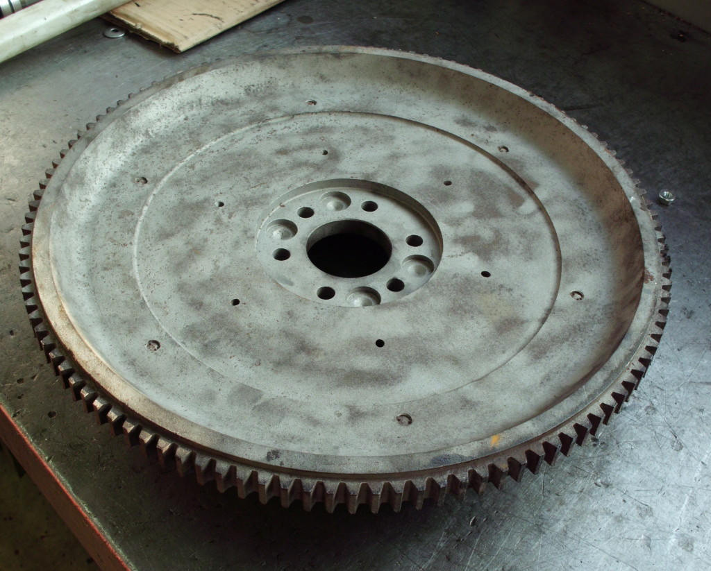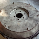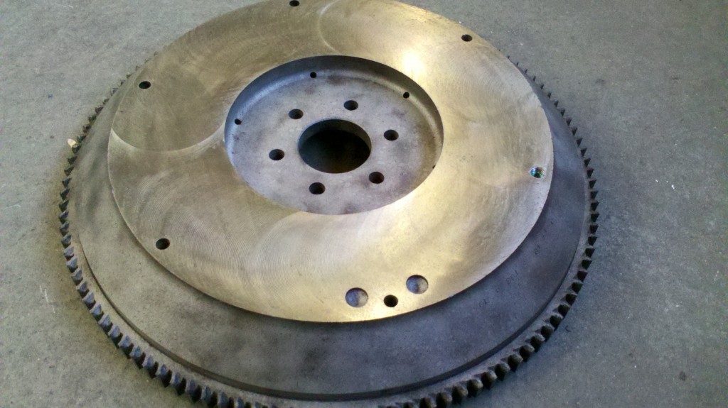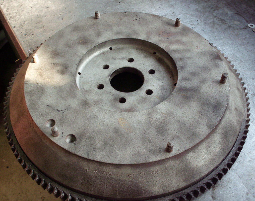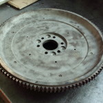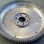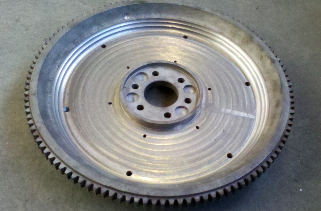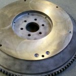 Zu Beginn der Bearbeitung wurde das Schwungrad gestrahlt. Im Rahmen der sportlicheren Auslegung des Triebwerks soll das Schwungrad erleichtert werden. Um dem Motor trotz Erleichterung der Schwungmasse noch einen ruhigen Leerlauf zu erhalten, haben wir eine gemäßigte Gewichtsreduzierung eingeplant. Das Gewicht des enorm schweren Schwungrades wurde um ca. 6 kg reduziert. Nach der Erleichterung wurde noch die Reibfläche plangefräst um eine 100{20de0094b84ab31f15d8e893bd427a4a876ff73c91e9d8d921ea99031f098016} Kraftübertragung sicher zustellen. Da die Schraubenköpfe der Schwungradschrauben stark beschädigt waren, wurden neue Schrauben angefertig. Zu guter Letzt wurde das Schwungrad dynamisch feingewuchtet.