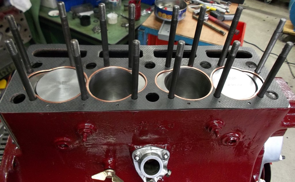 Stehbolzen u. angefertigte Kopfdichtung sind montiert