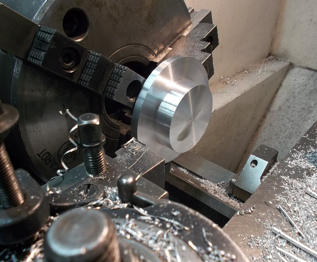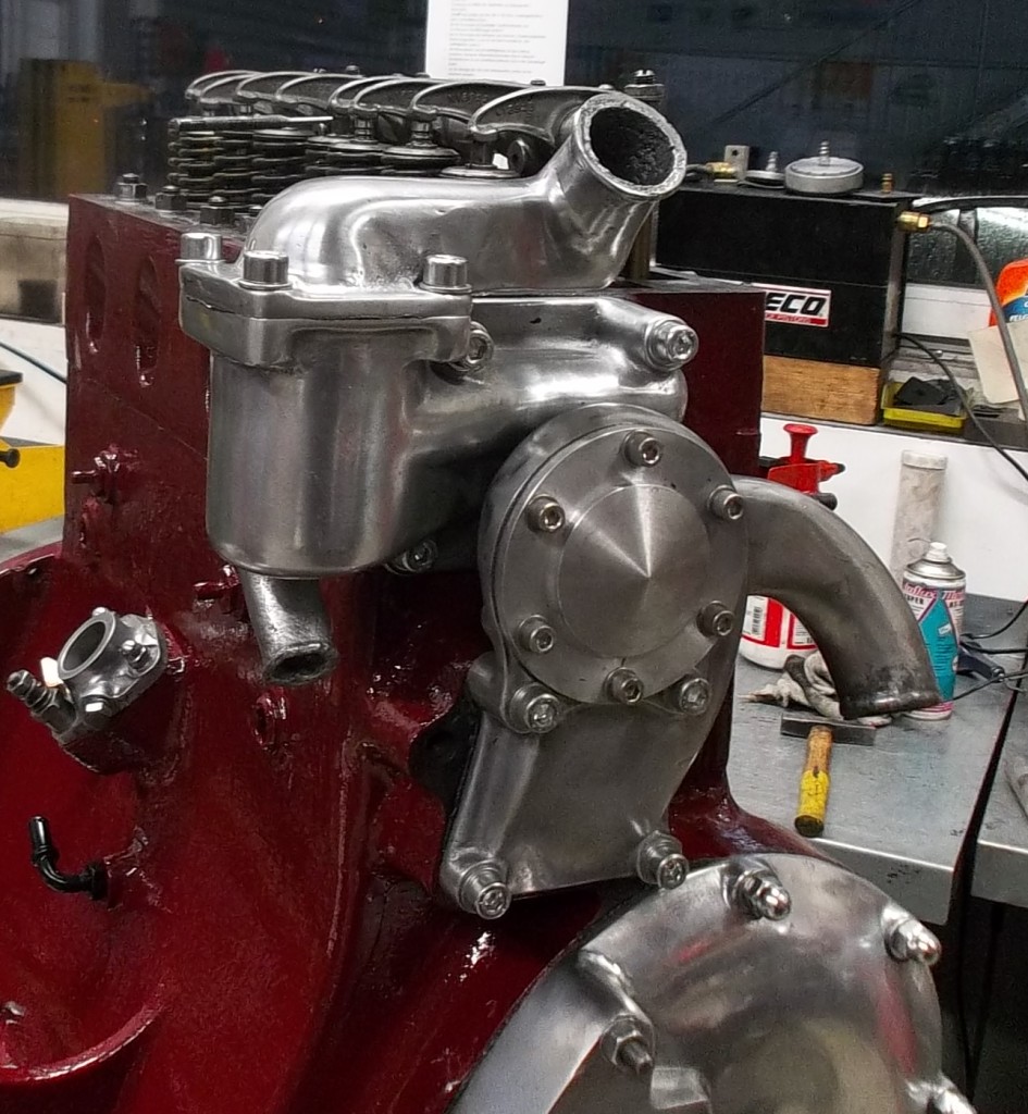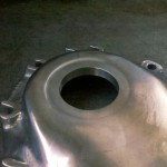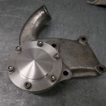 Aus dem Wasserpumpengehäuse muß das Pumpenrad samt Antrieb entfernt werden und ein Verschlußdeckel muß angefertigt werden. Der Deckel wird als Drehteil angefertigt und anschließend mit dem alten Gehäuse zusammen poliert.