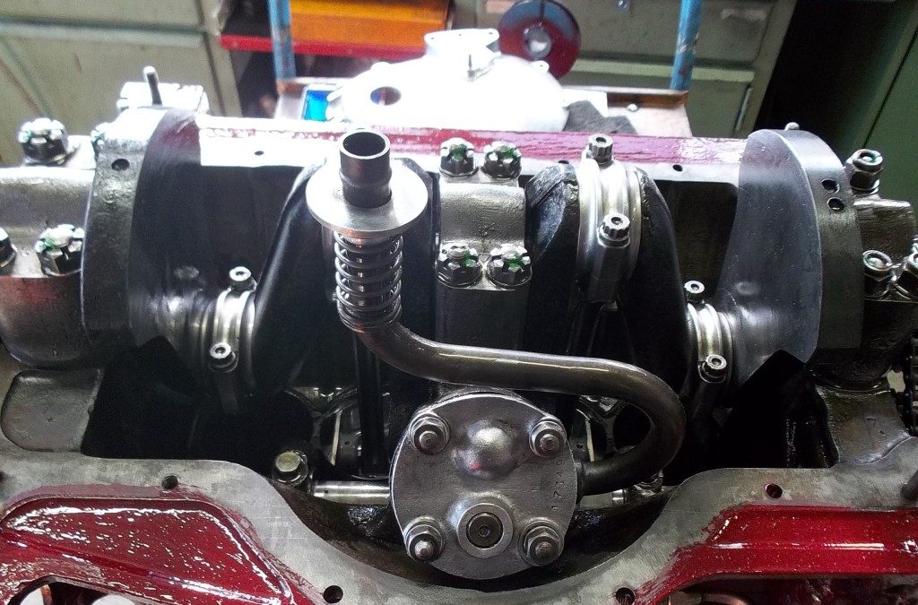alle Lagerdeckel sind befestigt und die Ölpumpe ist montiert