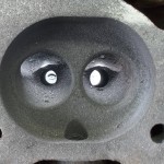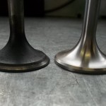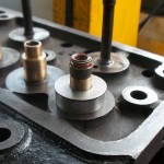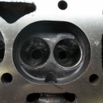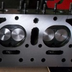 Entsprechend der vergrößerten Zylinderbohrung werden auch die Ein- und Auslaßventile größer ausgeführt. Die Ventile aus modernen Werkstoffen, werden noch der vorhandenen Kanalsituation entsprechend angepaßt. Der Zeitpunkt der ausgepressten Ventilführungen ist ideal um die Kanäle ungehindert dem größeren Ventilquerschnitt anzupassen. Nachdem die Kanäle bearbeitet sind, können die neuen Ventilführungen eingesetzt werden. Um die Gestaltung perfekt zu machen, werden jetzt die Ventilsitze bearbeitet. Eine hochmoderne Sitzfräsmaschine bearbeitet die Ventilsitze ströhmungsgünstig in der Flucht zu den neu eingesetzten Ventilführung.