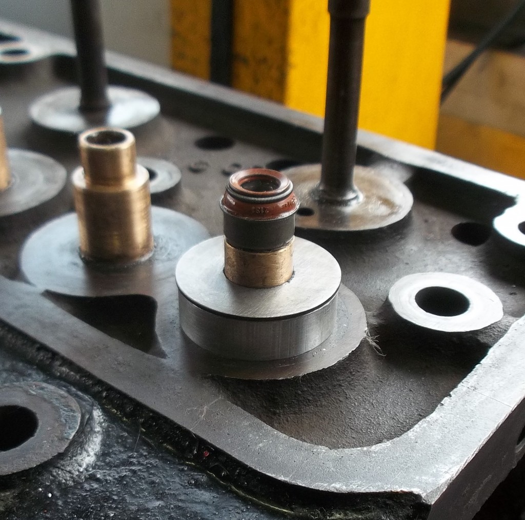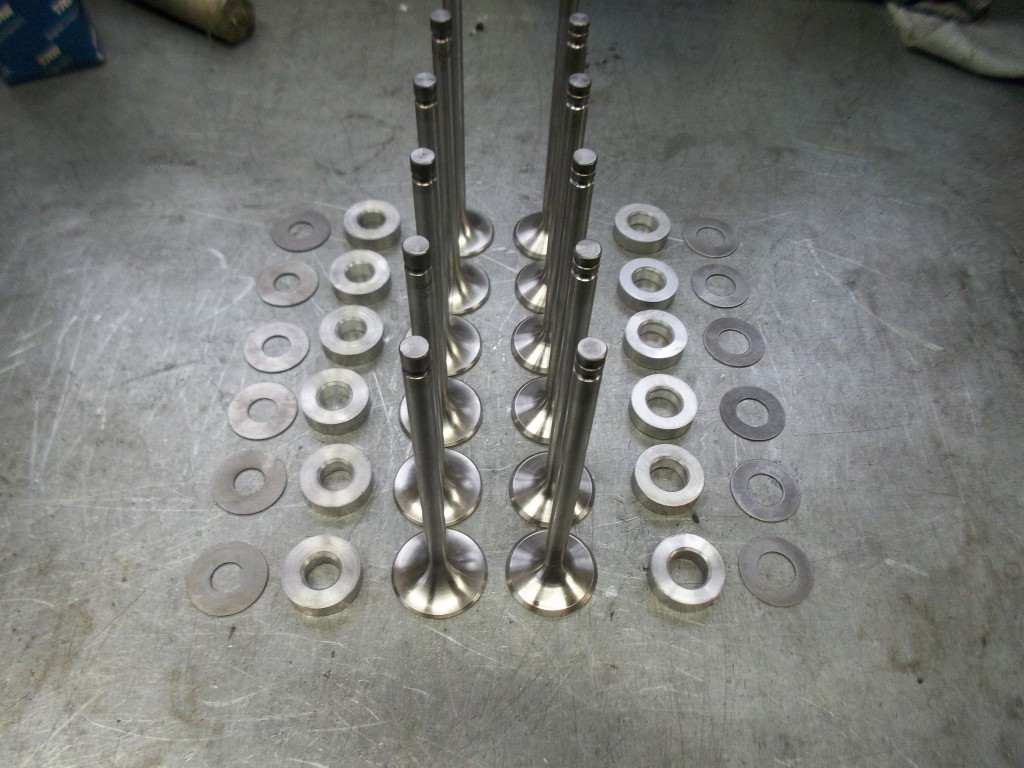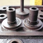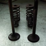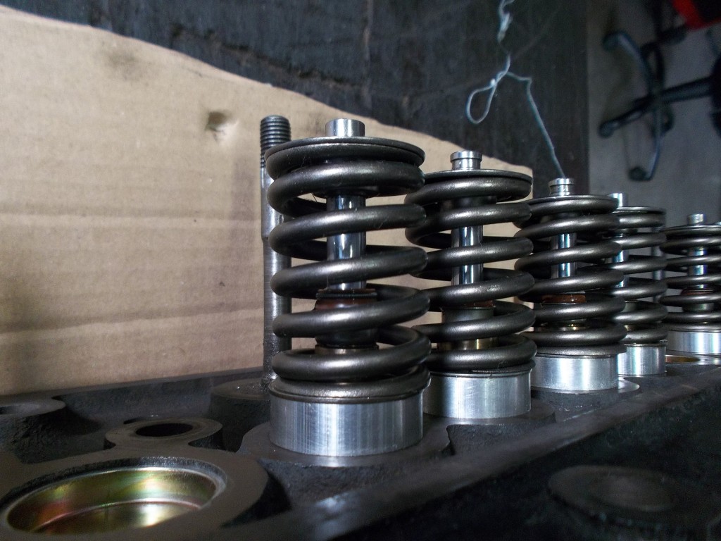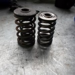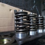 Die Doppelfederanordung wurde hinsichtlich der Federkräfte vermessen. Um ausreichend Platz für die Umrüstung auf Ventilführungen mit Schaftabdichtung zu schaffen, wählten wir Einfachfedern mit einer etwas erhöhten Federkonstante. Mit Hilfe angefertigter Federunterlagen werden die Federn auf die notwendigen Kräfte zu Beginn und dem maximalen Ventilhub eingestellt.