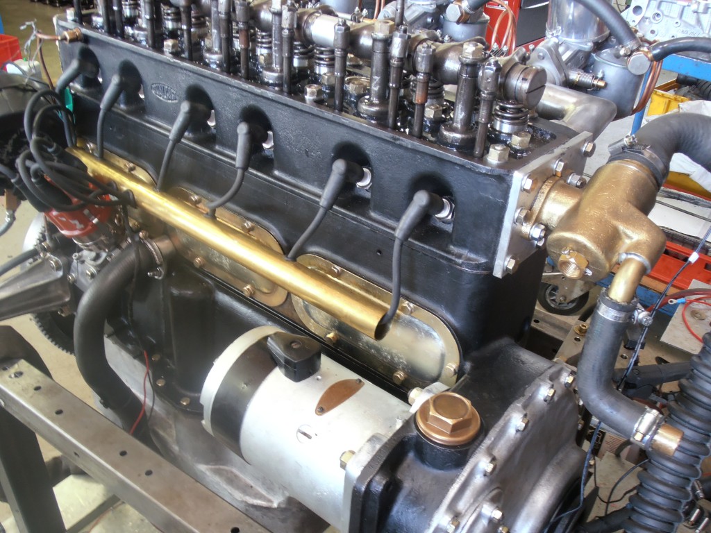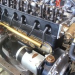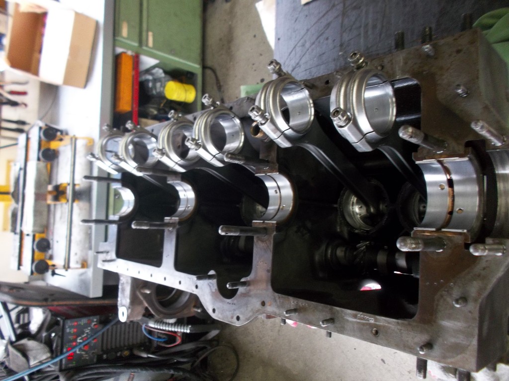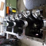 bevor der Motor ausgeliefert wird, erfolgen noch einige Probeläufe. Der Motor wird mit Öl befüllt und mit dem Anlasser durchgedreht. Bei diesen geringen Drehzahlen kann die Dichtigkeit des Schmierkreislaufs und die Druckverhältnisse schon aussagekräftig überprüft werden. Dieser Test verläuft ohne montierten Ventildeckel. So kann die Ölversorgung an oberster Stelle am Motor überprüft werden.