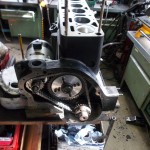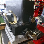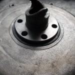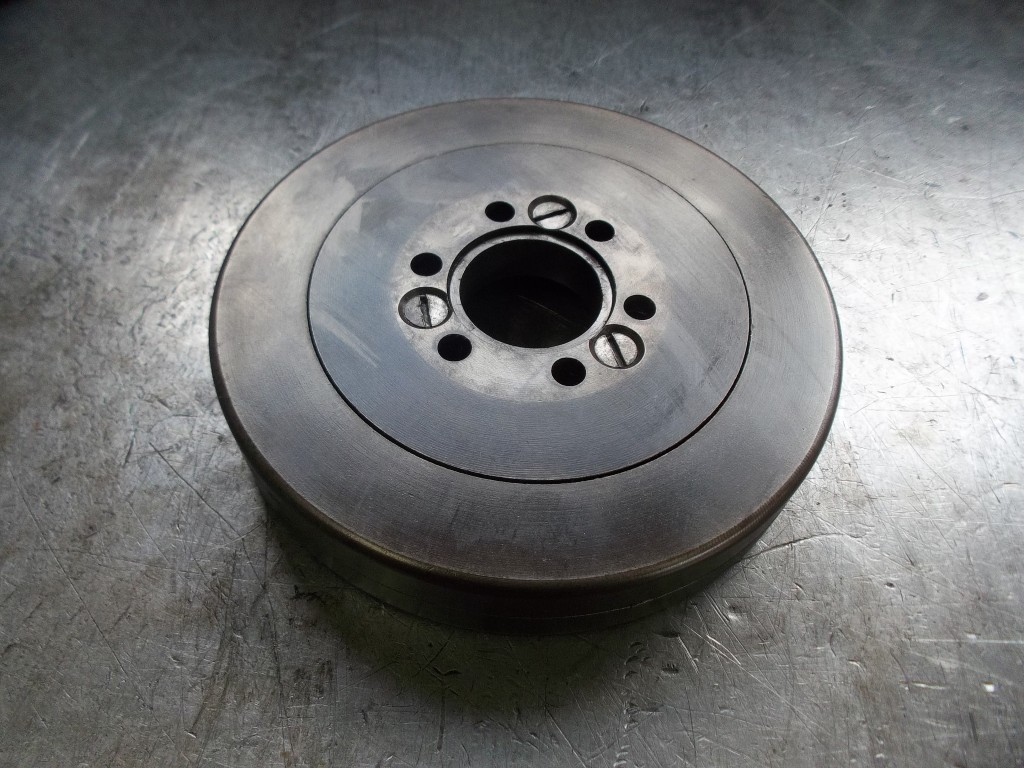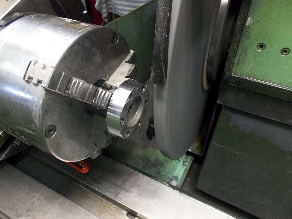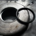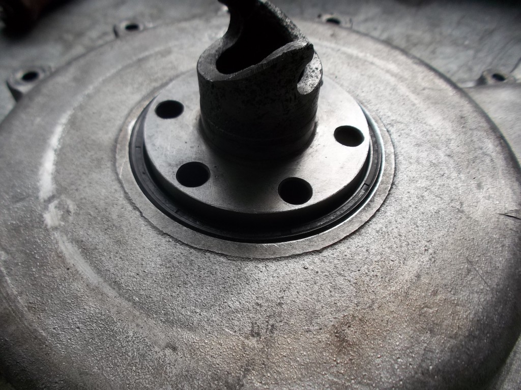 Die Abdichtung des Wellenendes aus dem Stirndeckel hinaus, war durch eine Rücklaufspirale realisiert. Der Gehäusedeckel war aber leider etwas ausgeschlagen und es drohte die Gefahr der Ölundichtigkeit. Daher entschieden wir uns dazu die Abdichtung auf einen modernen Wellendichtring umzurüsten. Die Rücklaufspirale an der Riemenscheibe wurde auf einer Rundschleifmaschine bearbeitet. Der Stirndeckel wurde für die Aufnahme eines Wellendichtring ausgefräst.