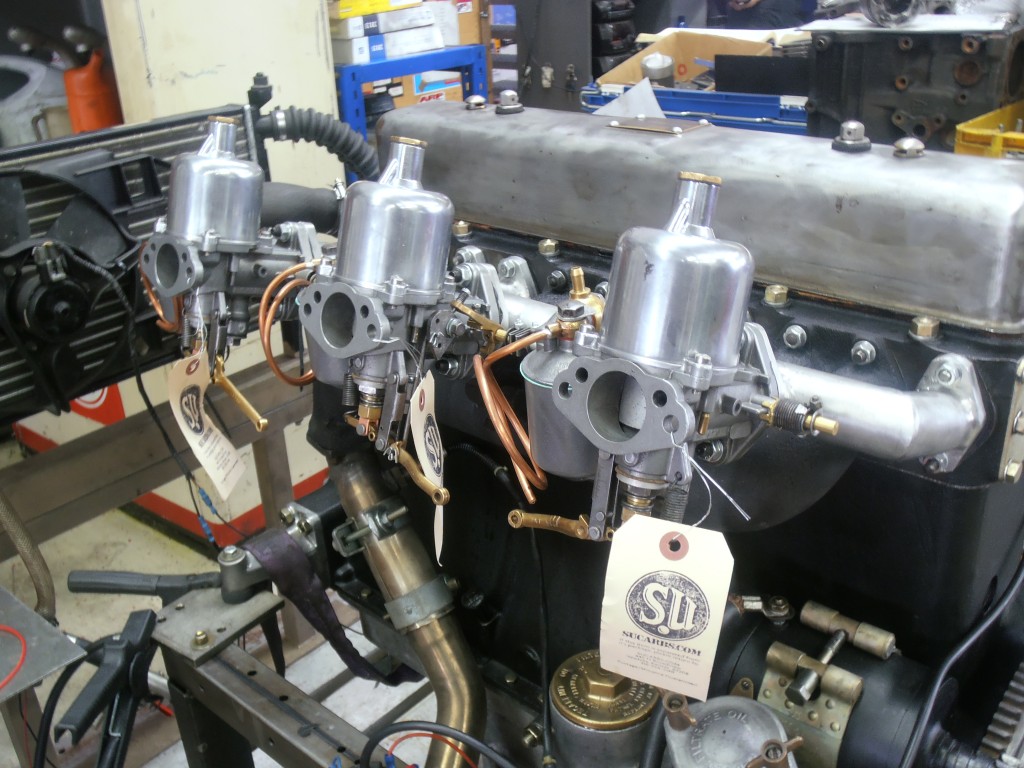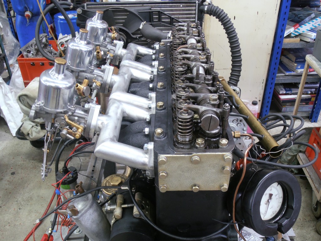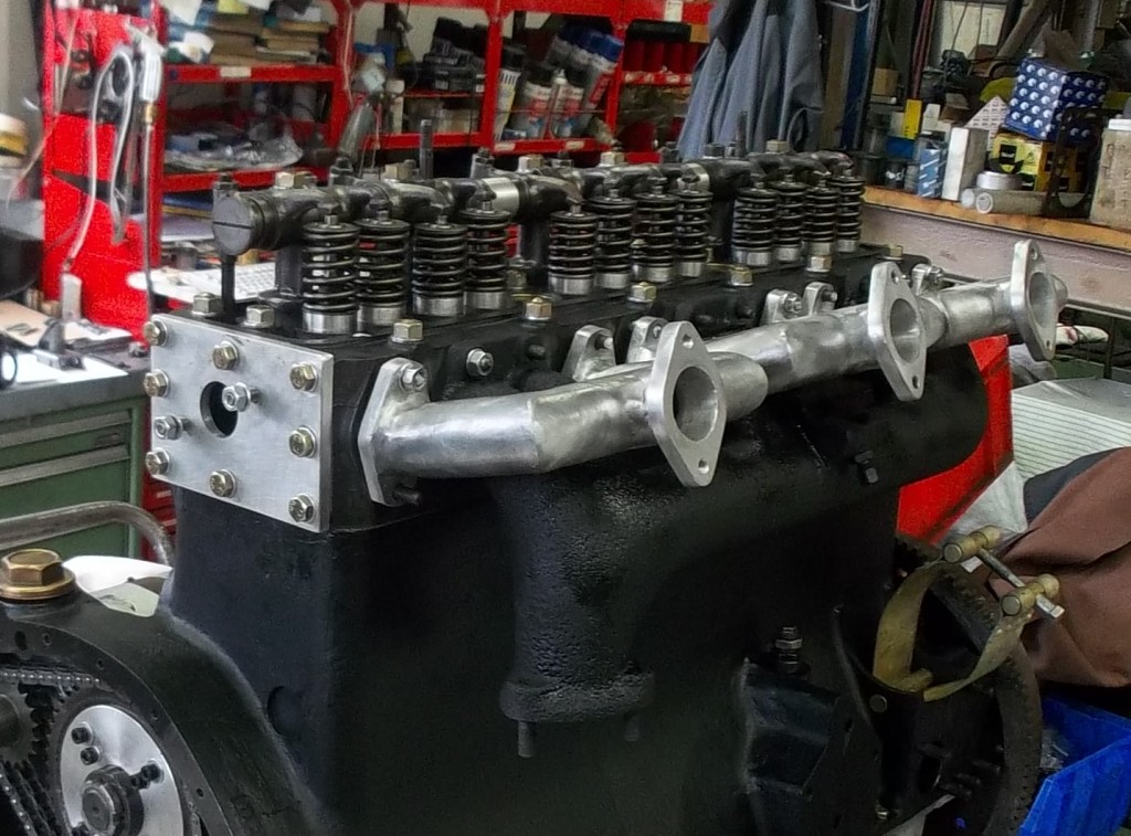 der Motor war ursprünglich mit einem Vergaser ausgerüstet. Das Saugrohr war entsprechend sehr ungünstig konstruiert. Das extrem verwinkelte Saugrohr mit höchst unterschiedlichen Saugrohrlängen, macht eine gleichmäßige Gemischversorgung der Zylinder unmöglich. Zudem war das Saugrohr, wie es früher üblich war, mit einem Anschluß an den Auspuffkrümmer ausgerüstet. Diese Gestaltung der Ansaugluftvorwärmung ist für die Planung eines leistungsfähigen Triebwerk nicht sinnvoll. Saugrohr wie auch Auspuffkrümmer müssen komplett neu gebaut werden. Die Saugrohre sollten in Anlehnung an die alten Rohre wieder in Aluminium ausgeführt werden und ein ähnliches Design haben. Das Saugrohr wurde als Schweißkonstruktion geplant. Die Gemischaufbereitung soll über drei H4 Vergaser erfolgen.