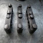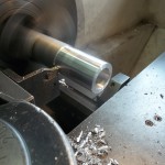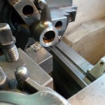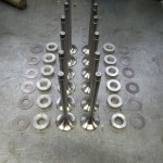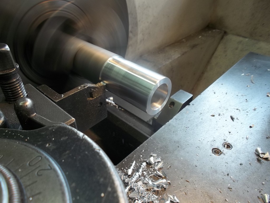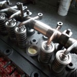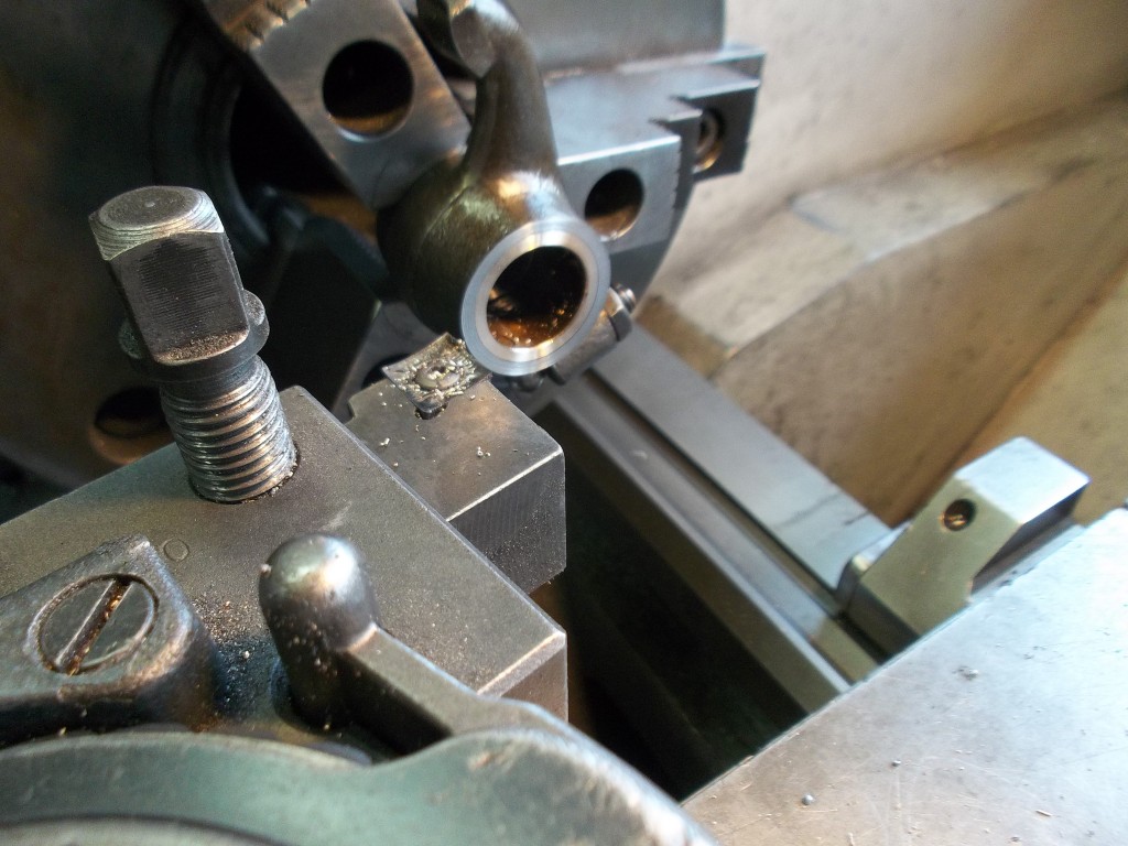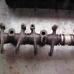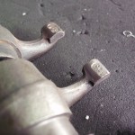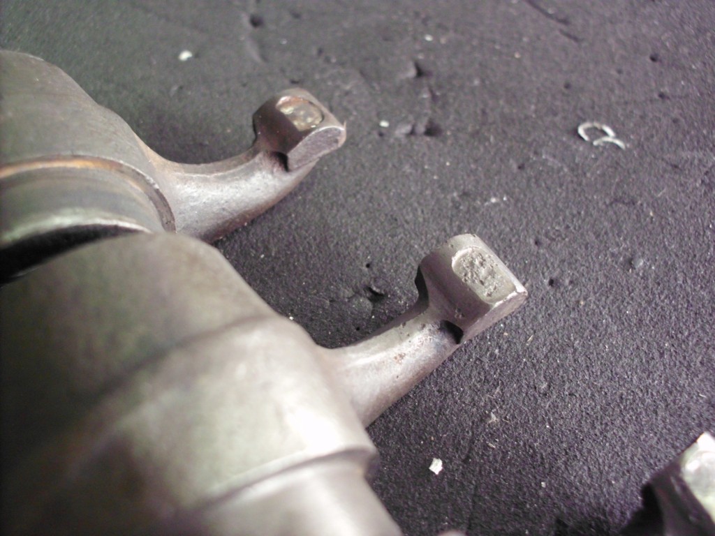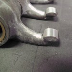 Die Radien, an den Berührungsflächen der Kipphebel, mußten neu geschliffen werden. Um die Hebel besser über den Ventilen auszurichten und die Reibung der ehemalig verwendeten Federn zwischen den Hebeln zu vermeiden, stellten wir die Positionierung mit Hilfe von Paßscheiben und Paßbüchsen sicher. Um eine fachgerechte Anlagefläche für die Paßscheiben zu erzielen, wurden die Kipphebel seitlich plan gedreht.