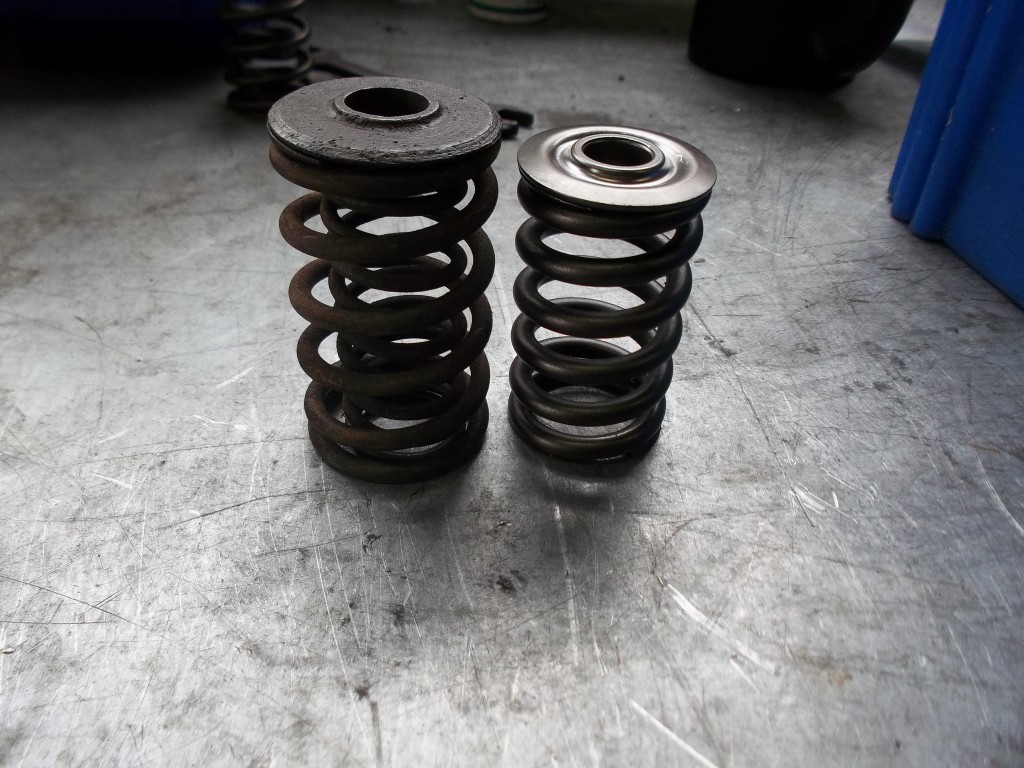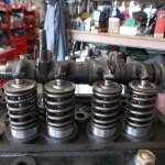 Die Federn waren teilweise deformiert oder gebrochen, die Ventilführungen hatten keine Schaftabdichtungen, die Ventilenden waren eingeschlagen und die Federteller stark verrostet. Hier mußte alles ersetzt werden und dem Leistungsanspruch angemessen dimensioniert werden.