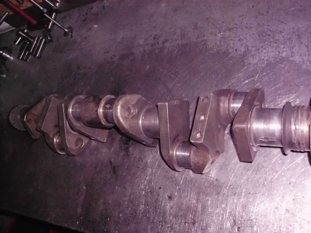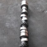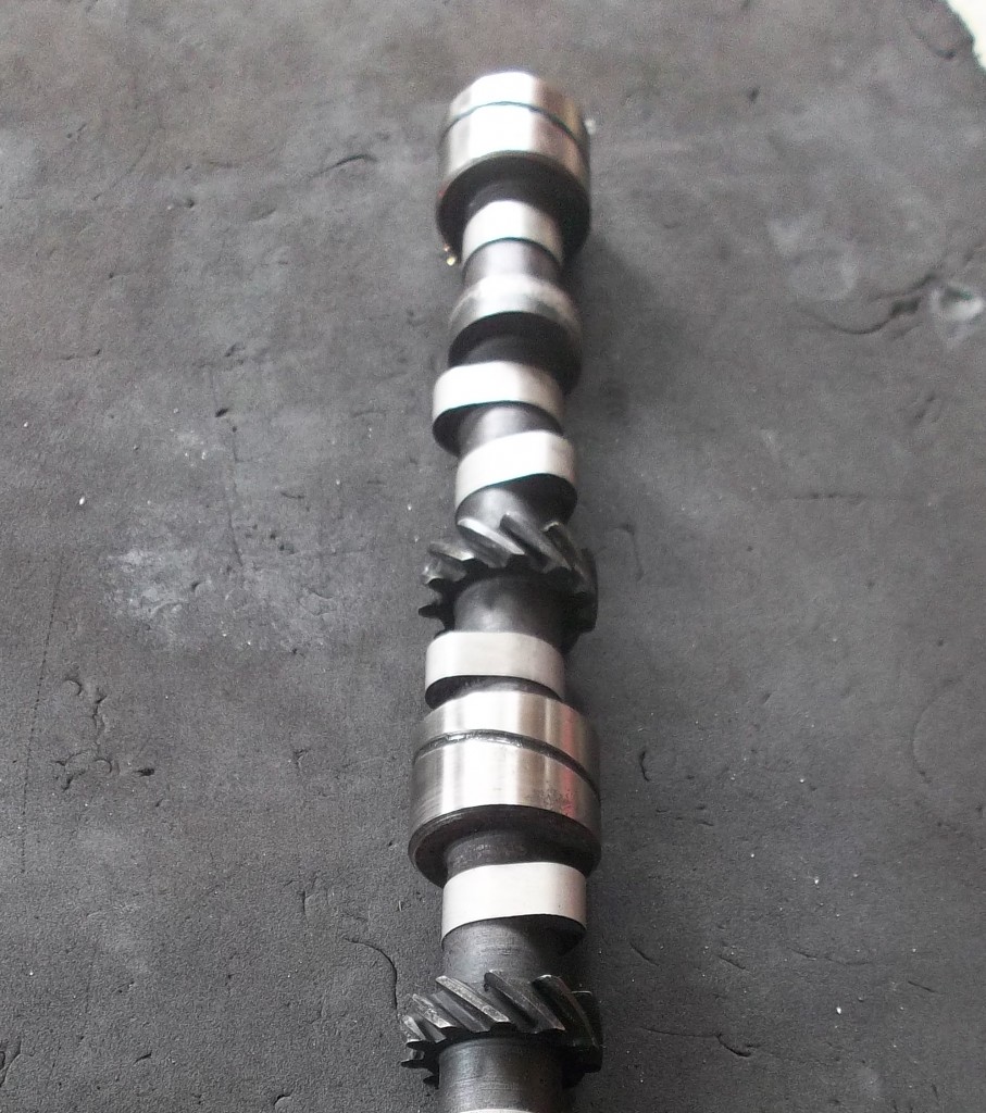 Die vorhandene Nockenwelle ist in vergangener Zeit unfachmännisch aufgeschweißt worden und ist damit für eine Aufarbeitung sehr ungeeignet. Die Kontaktflächen an den Stößeln waren durch die raue Oberfläche der Aufschweißung auch nicht mehr zu gebrauchen. Glücklicherweise konnten wir auf Teile eines zweiten Motors zurückgreifen. In diesem war Nockenwelle und Stößel in besserem Zustand. Um der Leistungssteigerung weiter nachzukommen, wird die Nockenwelle auf längere Steuerzeiten und mehr Nockenhub umgeschliffen. Die Radien an den Stößeln wurden ebenfalls geschliffen und alles ging zusammen zum Nitrieren. Dieses Härteverfahren wurde angewendet um den Verschleißschutz der Nockenwelle u. Stößel zu verbessern. Damit wir auch noch die Möglichkeit haben die Nockenwelle individuell zum Triebwerk zu positionieren, wurde das Kettenrad der Nockenwelle mit einer Feinverstellung ausgerüstet.