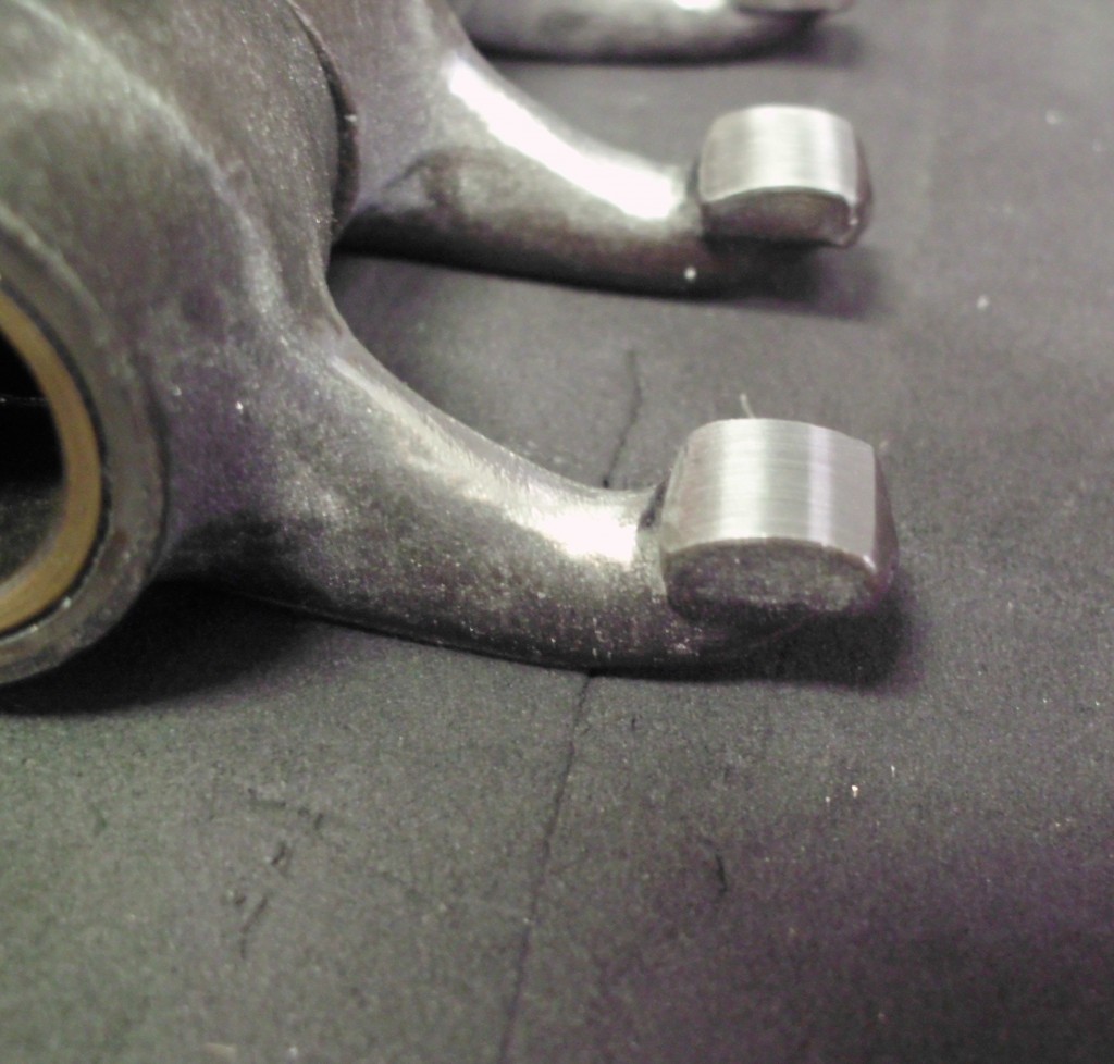 die Berührungsflächen der Kipphebel waren sehr stark eingeschlagen. Wie so oft, standen die Kipphebel auch nicht alle mittig über den Ventilen ausgerichtet.