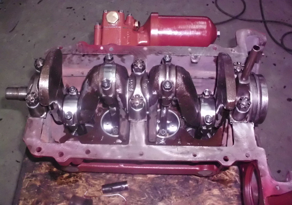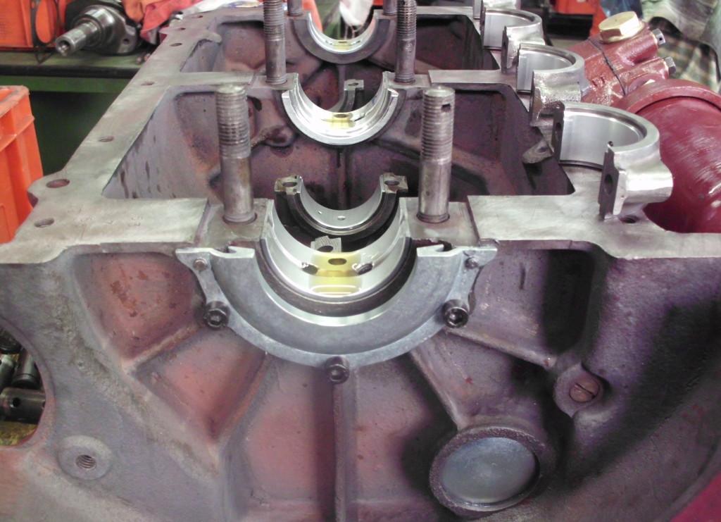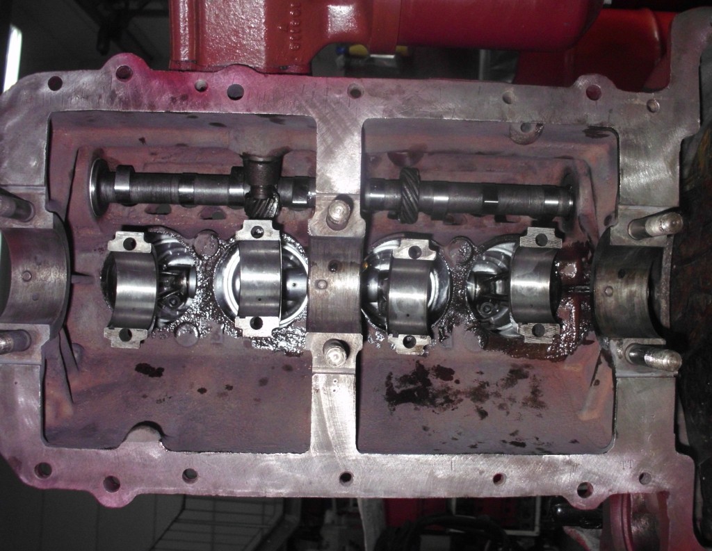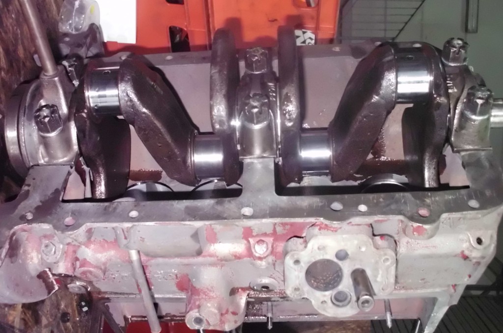 mit dem Vorsatz der 100{20de0094b84ab31f15d8e893bd427a4a876ff73c91e9d8d921ea99031f098016}igen Instandsetzung ging es auch an die Kurbelwelle. Die Haupt und Pleuellagerzapfen hatten schon das zweite Untermaß. Lager waren noch für drittes u. viertes Untermaß verfügbar. „Einfach nur schleifen“ war nicht die Devise. Alle Hubzapfen wurden auf ihre korrekte Lage überprüft und Abweichungen notiert. Häufig wird auf Grund von einseitigen Pleuelzapfenschäden die Lage eines Zapfens verlagert um mit einer geringen Untermaßstufen arbeiten zu können. Manchmal mangelt es auch an der nötigen Meßtechnik der bearbeitenden Firma. In unserem Fall stellten sich Abweichungen heraus, die im Rahmen der nächsten Unterstufe ausgleichbar waren. Alle Pleuelzapfen lagen nach der Bearbeitung wieder auf dem gleichen Kurbelradius und standen wieder exakt 180Grad zueinander versetzt. Zu guter Letzt wurde die Welle noch mit dem Schwungrad dynamisch feingewuchtet. Damit ist die Basis für einen vibrationsfreien Motorlauf und eine lange Lebensdauer des Triebwerks gelegt.