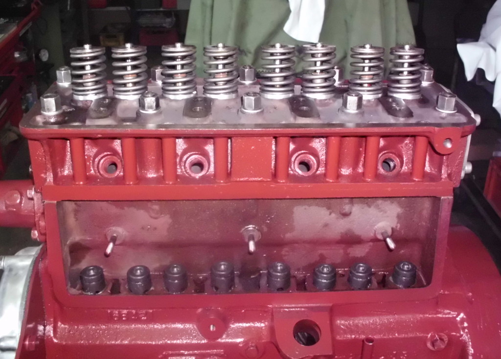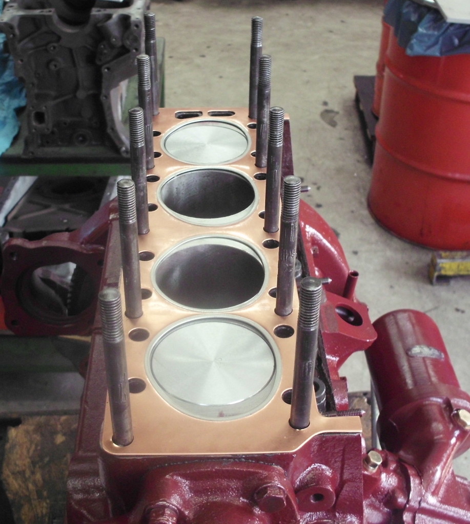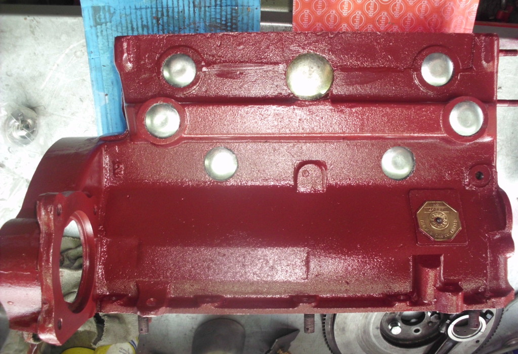 nach dem entfernen der alten Farbe, entfernen aller Froststopfen und gründlicher Reinigung von innen und aussen, wurden die Zylinderbohrungen auf das nächste Übermaß aufgebohrt und gehont. Die Dichtfläche zum Zylinderkopf wurde plangefräst. Mit neuem Lack und neuen Froststopfen erstrahlt der Motor in neuem Glanz.