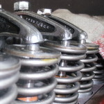 Zur Ursachenforschung wurde eine Ventilfederanordnung vermessen. Die Federkräfte bei geschlossenem und maximalem Ventilhub wie auch bei Zwischenwerten wurden erfaßt. Die ermittelte Federkennlinie und die Federrate zeigten Werte einer harten Federanordnung für Sportmotoren. Im Anbetracht des langhubig ausgelegten Triebwerks, mit gemäßigten Steuerzeiten der Nockenwelle und dem geringen Drehzahlniveaus können die Federn in jedem Fall weicher ausgelegt werden. Damit wird die Belasung auf alle Teilen des Ventiltriebes reduziert.