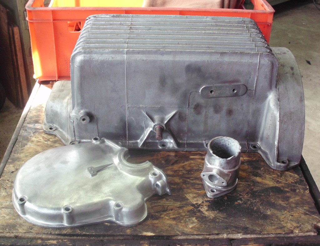 um das Projekt angemessen abzurunden, wird das Äussere noch behandelt. Anbauteile werden gestrahlt, gebürstet, lackiert, Schrauben werden erneuert, Deckel angefertigt …..
