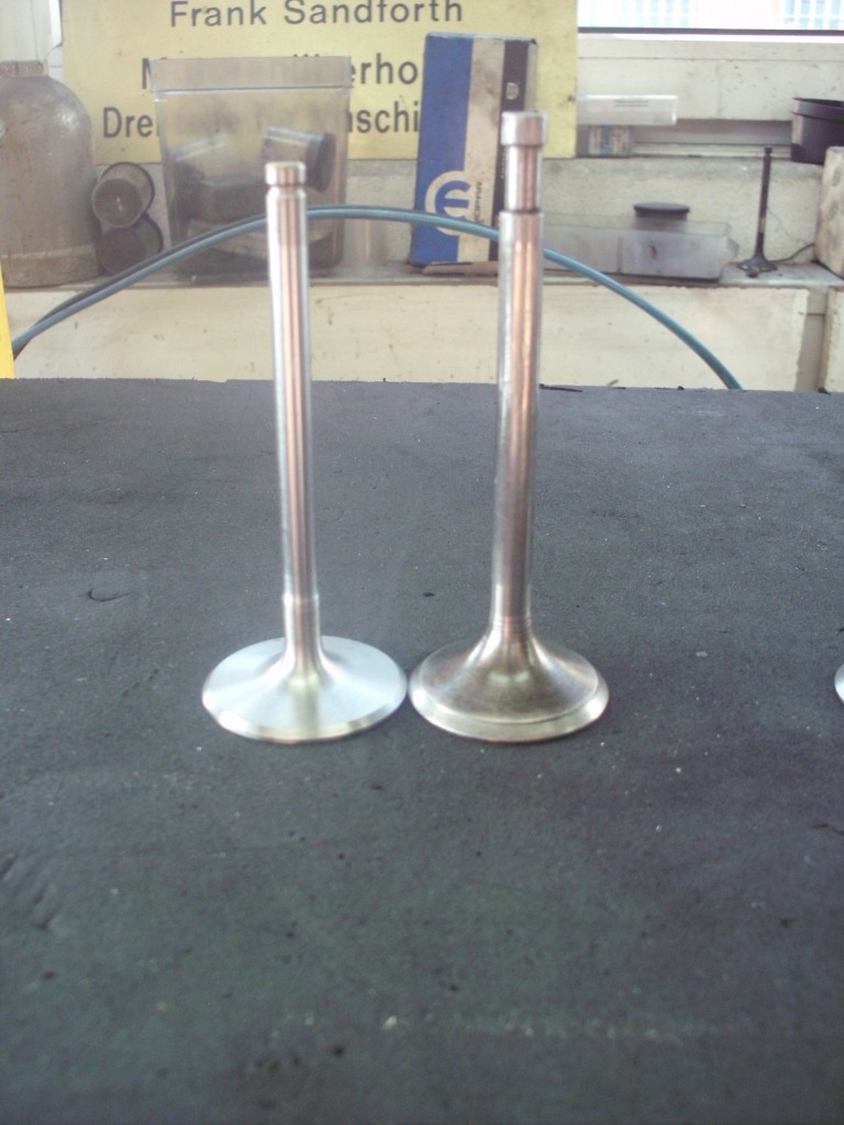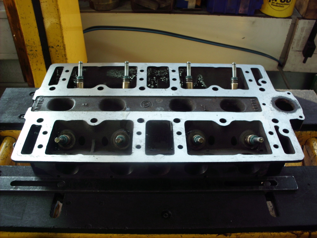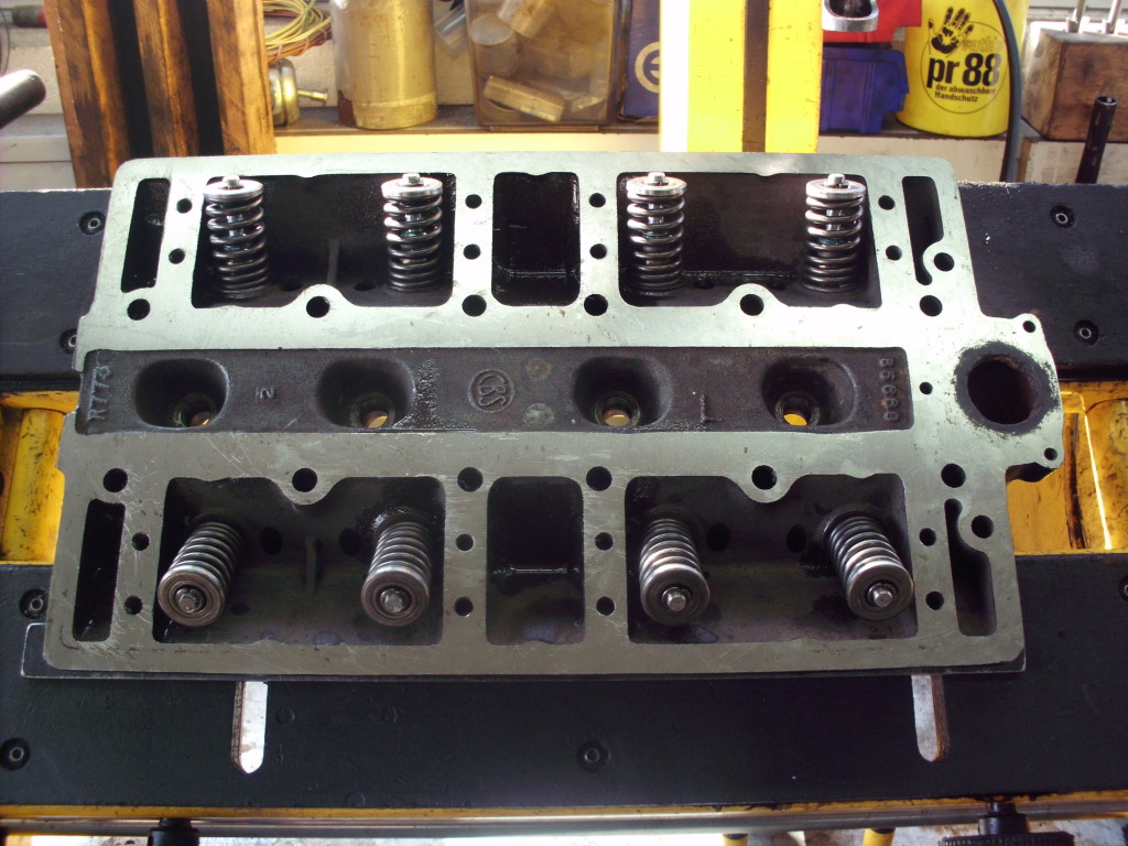 Der Zylinderkopf wurde mit Sitzringen für den Bleifreibetrieb ausgerüstet. Die Ventile wurden gegen größere, leichtere Ventile mit schlankeren Schäften ausgetauscht. Dementsprechend wurde der Kopf mit angefertigten Bronzeventilführungen ausgerüstet, die zur Befestigung moderner Schaftabdichtungen vorgerichtet sind. Nach Prüfung der Federrate wurde eine moderne Einfachfeder ausgewählt. Im Hinblick auf die Verwendung eines zahmen Sportprofils der Nockenwelle hat die Feder noch ausreichend Federkraftreserve.
