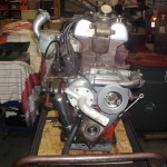 alle benötigten Teile liegen bereit und es geht daran das Werk zu vollenden. Neue Zylinderkopfstehbolzen sind eingeschraubt, eine neue Wasserpumpe ist montiert, die Vergaser sind überholt, die Motorlagerung ist mit neuen Gummielementen montiert……