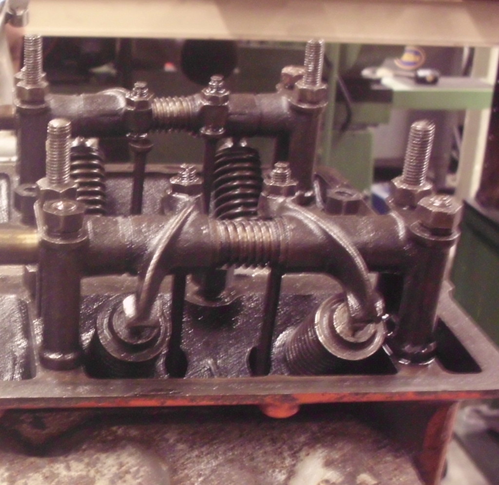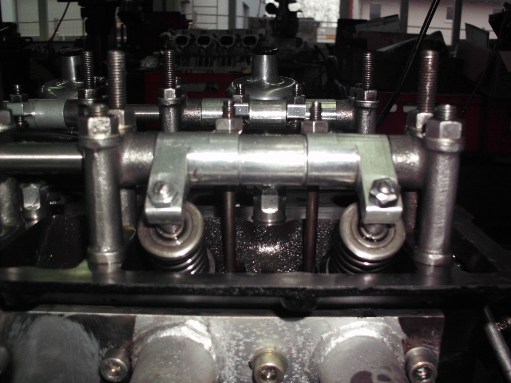 Der Zustand des Ventiltriebes verlangte einen kompletten Wiederaufbau. Ventilenden und Kipphebellaufflächen waren stark beschädigt, die Kipphebelwelle zeigte starken Verschleiß und die Federn waren zum Teil erlahmt.