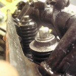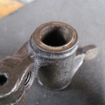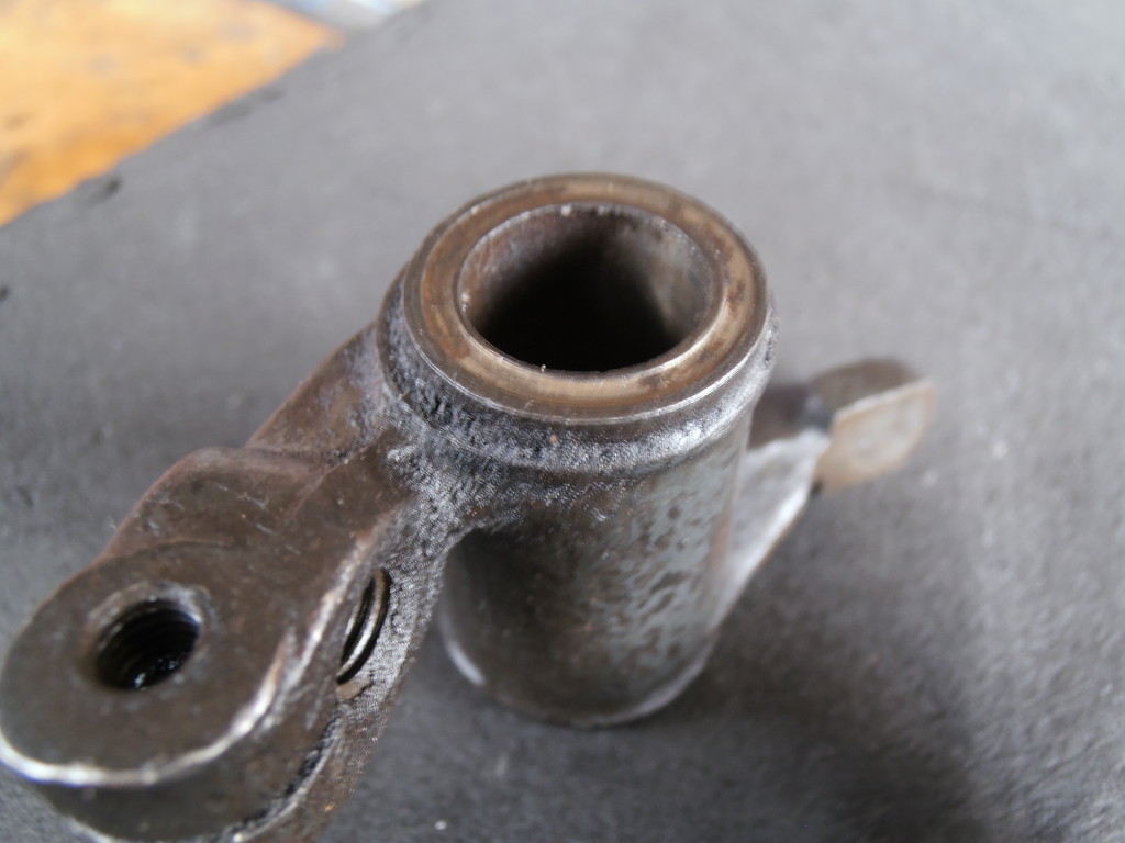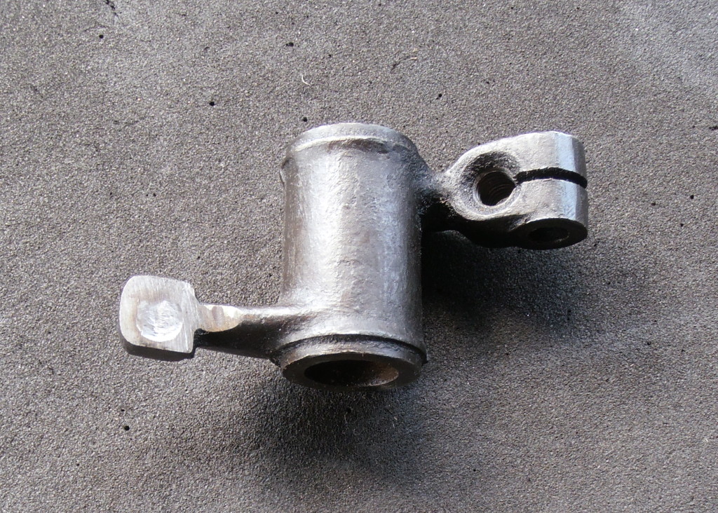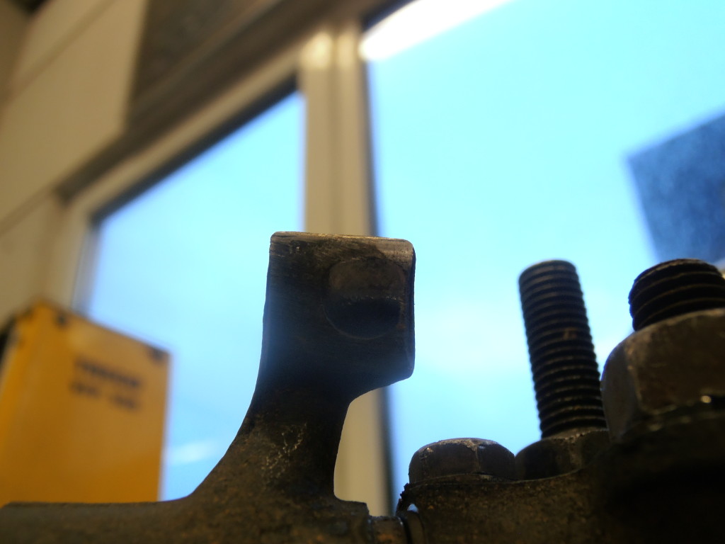 Wie an vielen Motoren dieses Alters sind die Gleitflächen an den Kipphebeln von den Ventilenden eingeschlagen. Oft, wie auch in diesem Fall, zeigen die Flächen deutliche Spuren von unfachgerechten Reparaturen. Die Radien der Gleitflächen sind unterschiedlich bearbeitet und liegen nicht parallel auf dem Ventilende auf. Da die Lagerbüchse, wie auch die seitlichen Anläufe der Hebel verschlissen sind, haben wir uns für den Austausch der Hebel entschlossen.