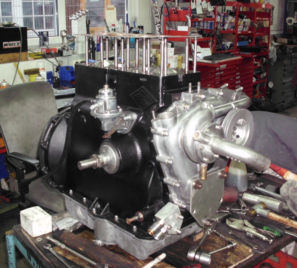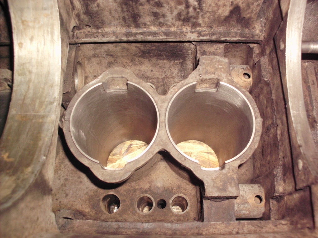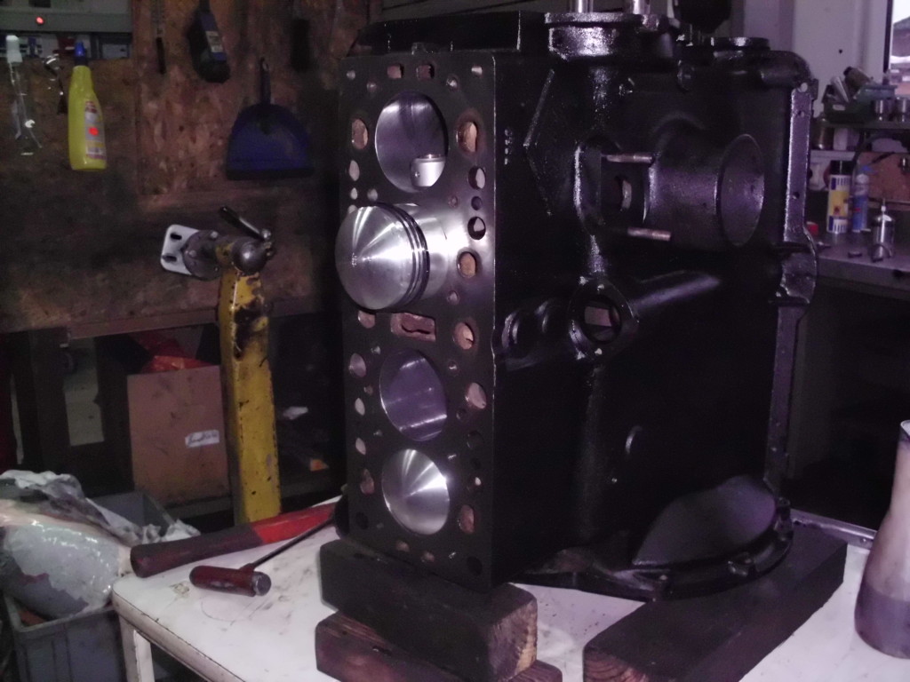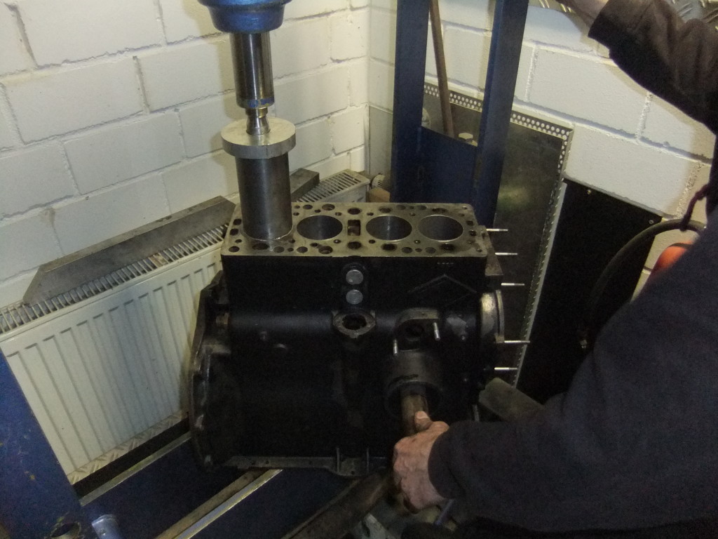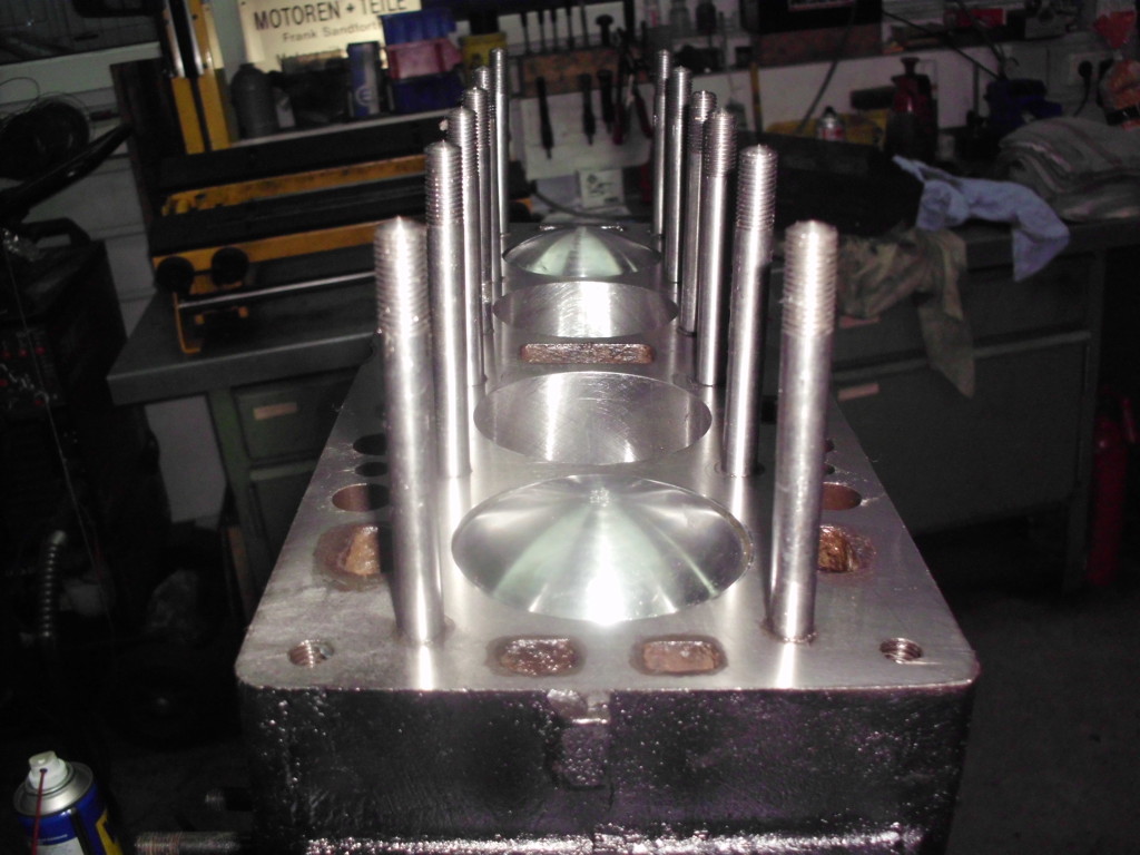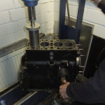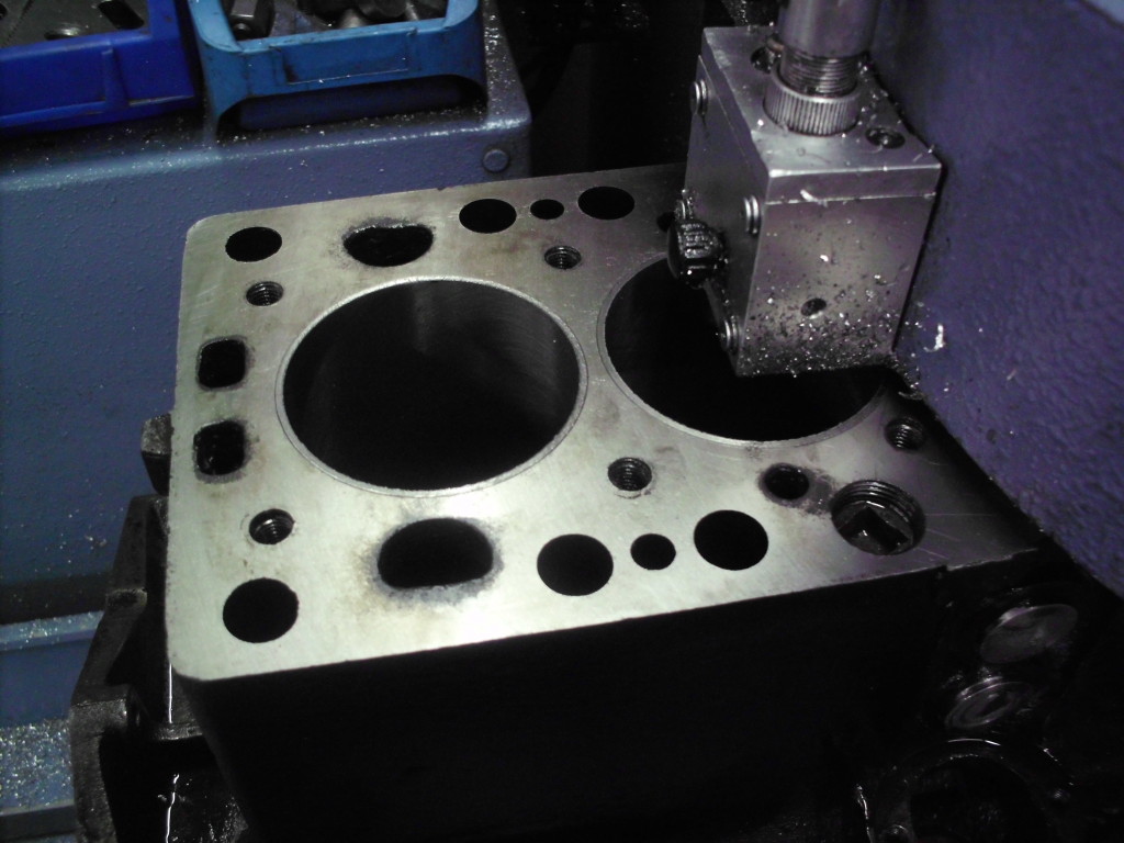 Vorhandene Zylinderlaufbüchsen wurden aus dem Motorblock ausgebohrt, neue Büchsen angefertigt und in den Block eingepresst. Die Dichtfläche zum Zylinderkopf wurde abschließend plangefräst.