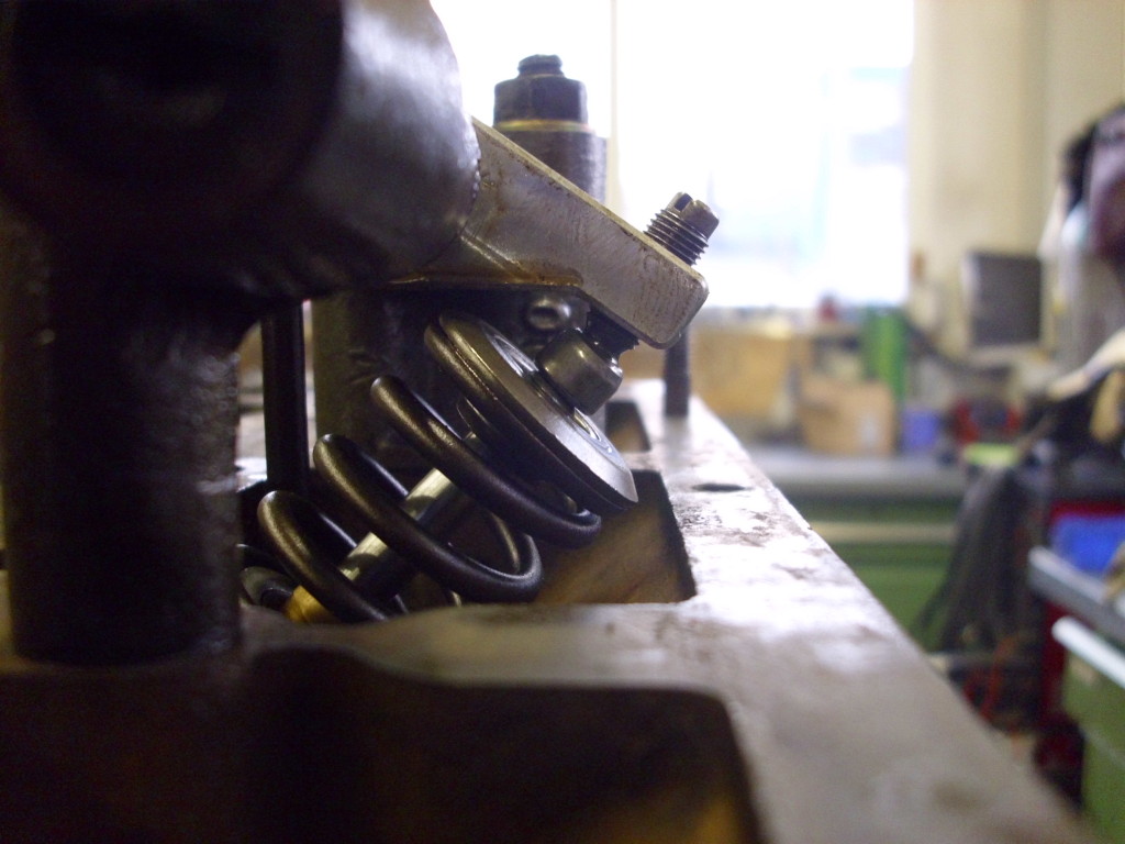 alter Aufbau des Ventiltriebes mit Feder zur axialen Fixierung der Kipphebel