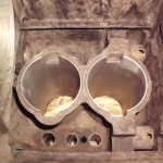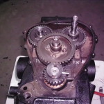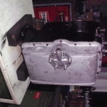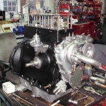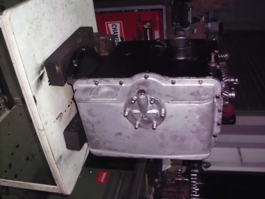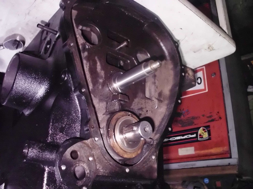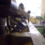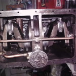 Die Lagerschalen der Hauptlagerung wurden neu ausgegossen und in den Motorblock eingebaut. Auf dem Horizontalbohrwerk wurde die Hauptlagergasse auf das Maß der frisch geschliffenen Kurbelwelle gebohrt.