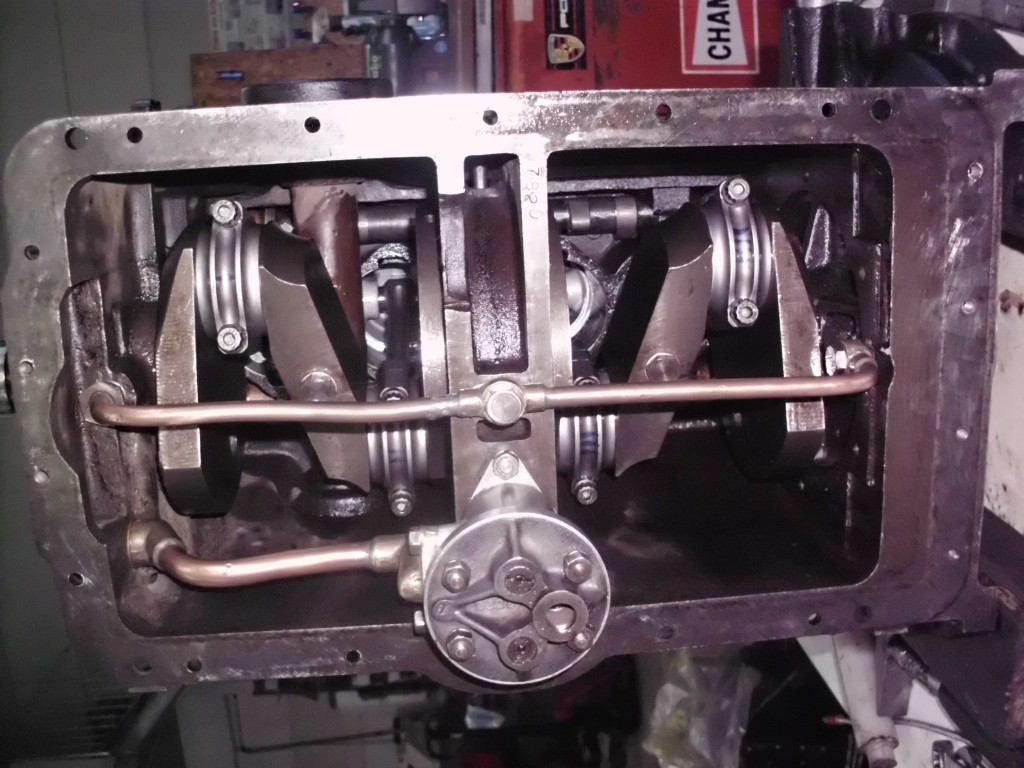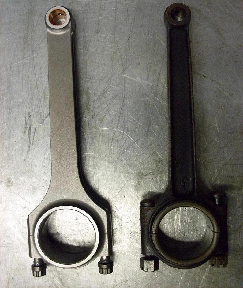 Neben Standardabläufen, wie das Eisstrahlen des ganzen Motorgehäuses samt Kühlkanälen, wurden auch am Kurbeltrieb tiefgreifende Änderungen vorgenommen. Die originalen Pleuel mit ausgegossenen Lagern wurden gegen H-Schaft Pleuel des Herstellers „Arrows“ ausgetauscht. Diese Pleuel werden mit modernen Dreistofflagern ausgerüstet. Bei einem möglichen Reparaturfall können dann schnell und kostengünstig die Lagerschalen ausgewechselt werden. Pleuel von Arrows stehen für beste Qualität. Die Pleuel sind sehr stabil, maßhaltig, leicht und mit hochwerten ARP-Schrauben ausgerüstet. Die Abweichungein in der Massenverteilungen hinsichtlich rotierenden und oszillierenden Massen entspricht höchsten Ansprüchen.