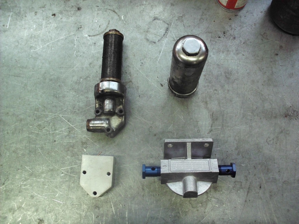 die alte Ölfiltereinheit wurde nicht mehr eingesetzt. Durch Anbringen der Adaptereinheit am Motorblock, kann über Druckschläuche die externe Ölfiltereinheit angeschlossen werden. An der externen Ölfiltereinheit können aktuelle Ölfilter verwendet werden.