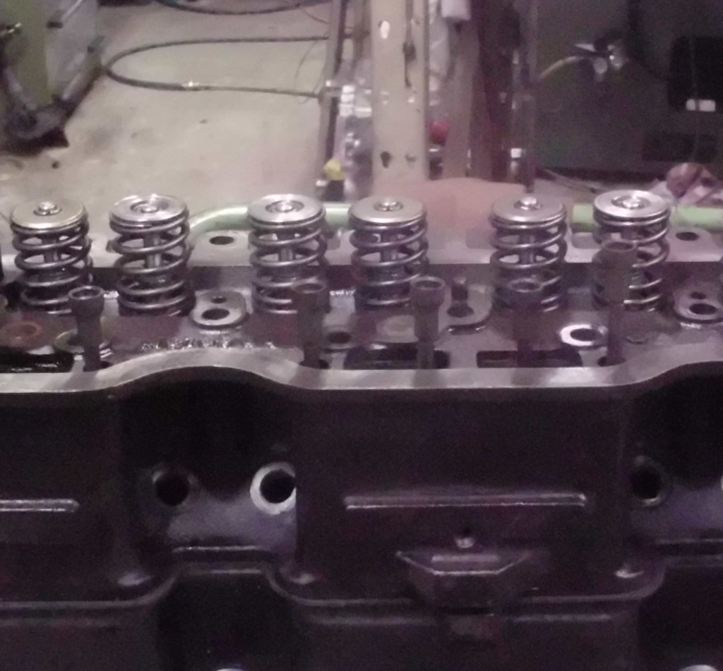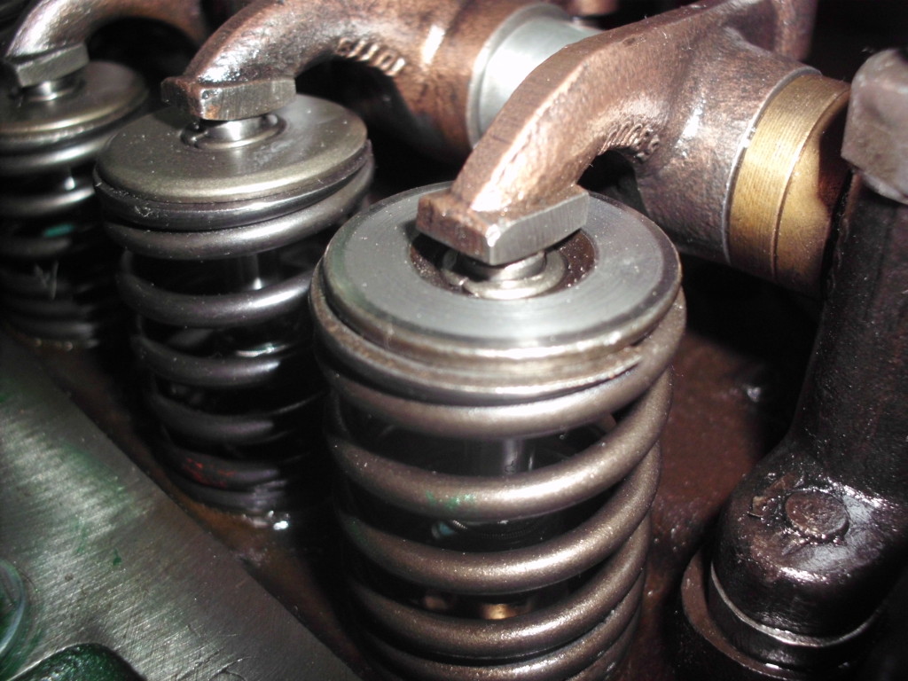 Kipphebel: die alten Lagerbüchsen wurden entfernt, die Radien der Gleitflächen wurden auf unsere speziell für diese Arbeiten entwickelten Maschine neu geschliffen, die Hebel gehärtet und anschließend mit neu angefertigten Lagerbüchsen versehen. Die original verwendeten Federn zur axialen Führung der Kipphebel, wurden durch Aluminiumbüchsen mit Stahlanlaufschieben ersetzt.