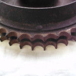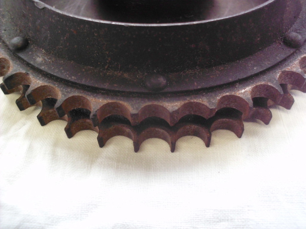 die Kettenräder des Stirnradtriebes waren bis zum Zahnausfall verschlissen