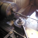 der hintere Zapfen wird auf Maß geschliffen