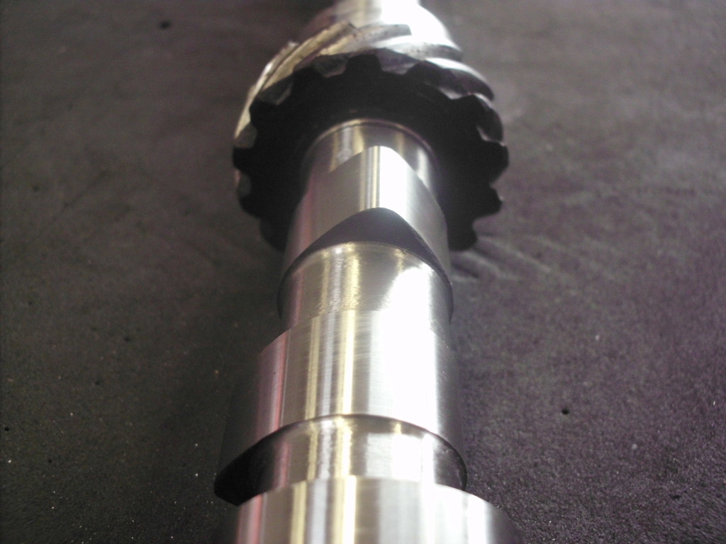die Nockenwelle war an den Nocken und an den Lagerstellen stark beschädigt. Die Lagerstellen im Gehäuse sahen entsprechend aus.