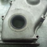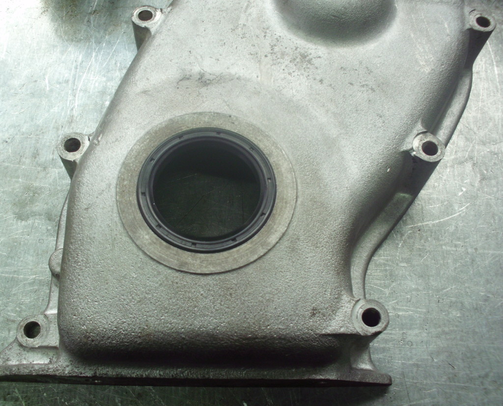 in ähnlicher Weise wie am hinteren Kurbelwellenende wurde auch die Vorderseite umgebaut. Wir verwendeten einen Wellendichtring, bei dem wir möglichst wenig aus dem Deckel ausfräsen mußten und am vorderen Zapfen des Schwingungsdämpfers abdrehen mußten. Alles war perfekt aufeinander abgestimmt und wir hatten eine standfeste, einfach zu handhabende Wellenabdichtung.