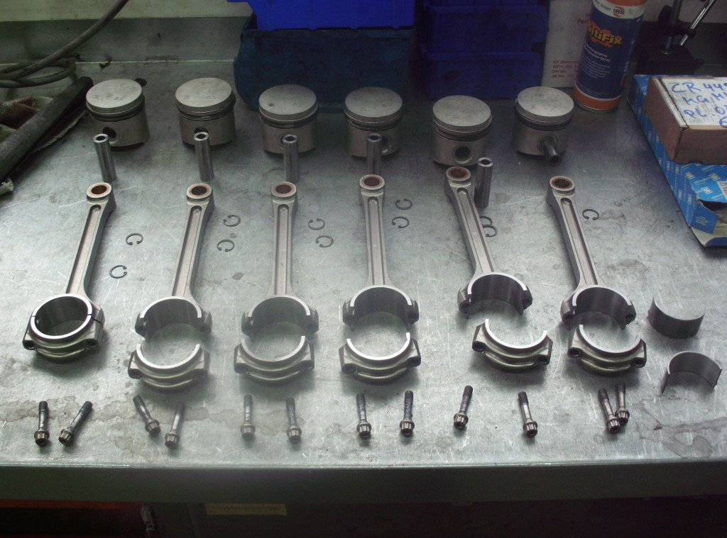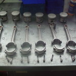 Kolben und Pleuel liegen bereit zur Montage