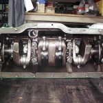 eingebaute Kurbelwelle mit Pleueln u. Kolben