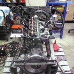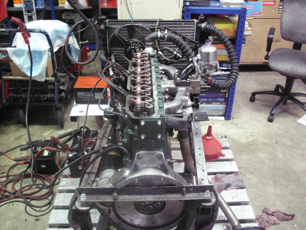 Der Motor ist komplettiert und auf unserem Prüständer mit einem Kühler verbunden.